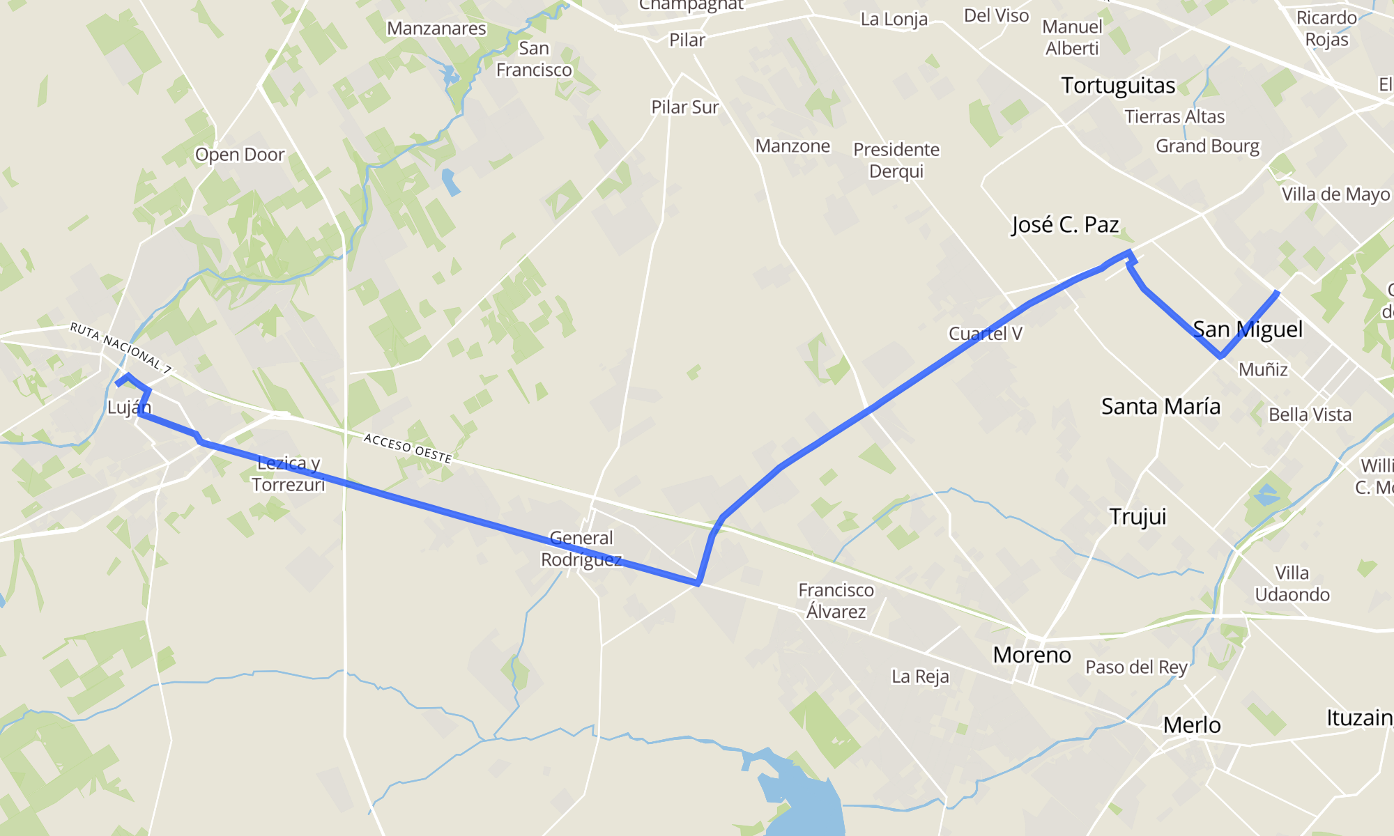 Sentido: Terminal Luján - Plataforma 13 ‎→ Plaza De La Bandera (147 paradas)