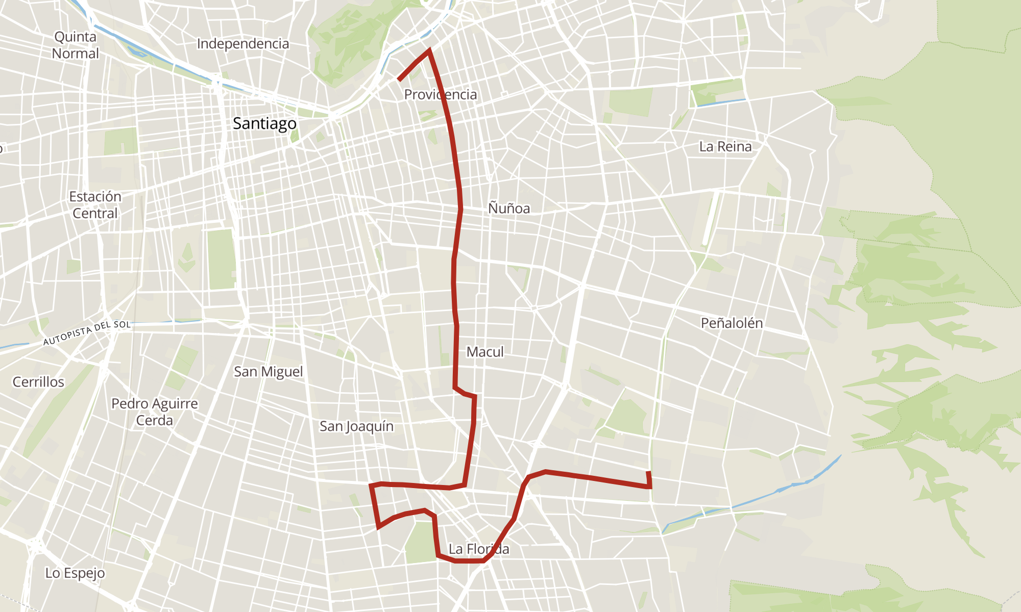 | PD614-Avenida Las Torres / esq. Avenida Tobalaba | PC1-Parada 3 / (M) Manuel Montt |