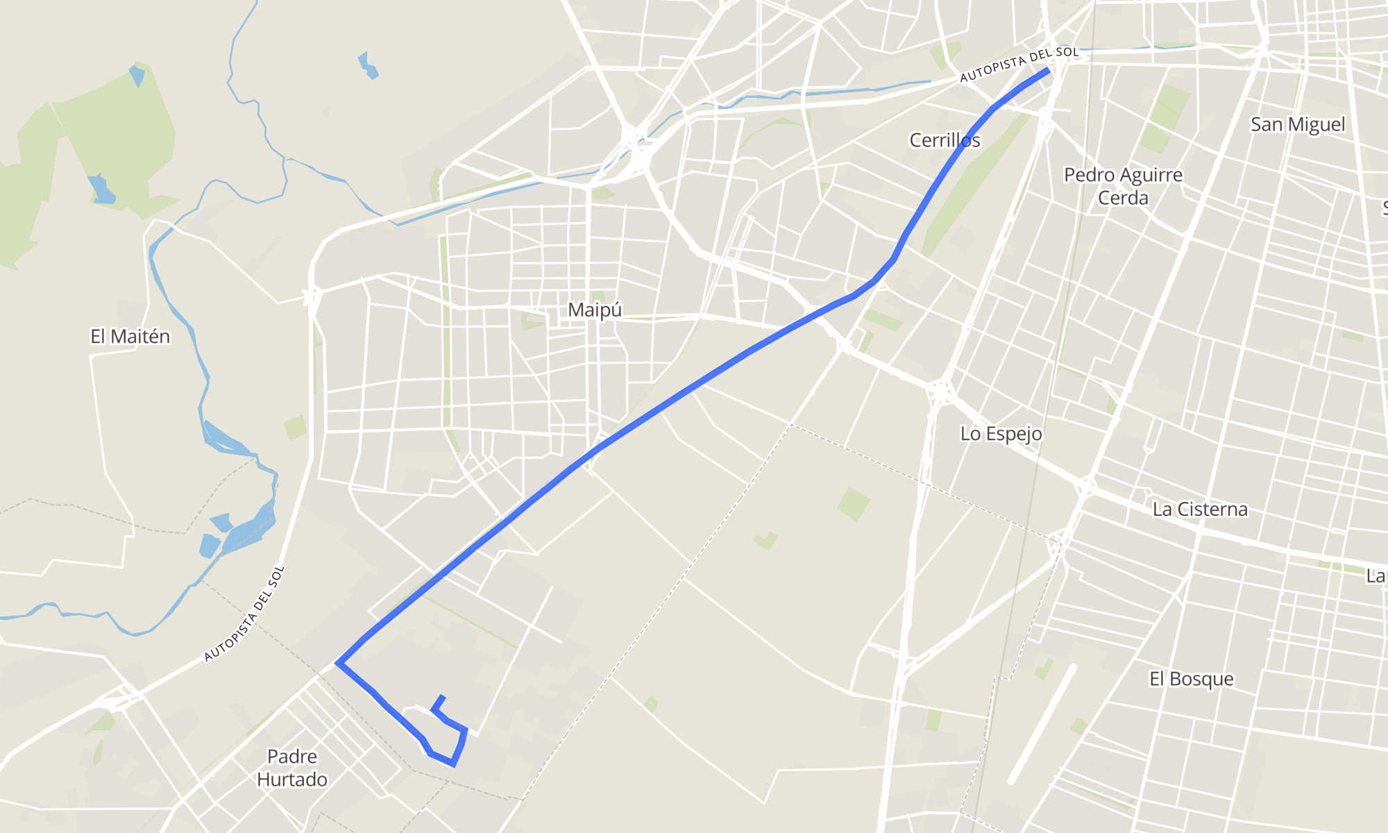 Sentido: PI1093-Jorge Andrés Guerra / esq. J. Infante Larraín ‎→ PI289-Avenida Buzeta / esq. Avenida 1 (44 paradas)