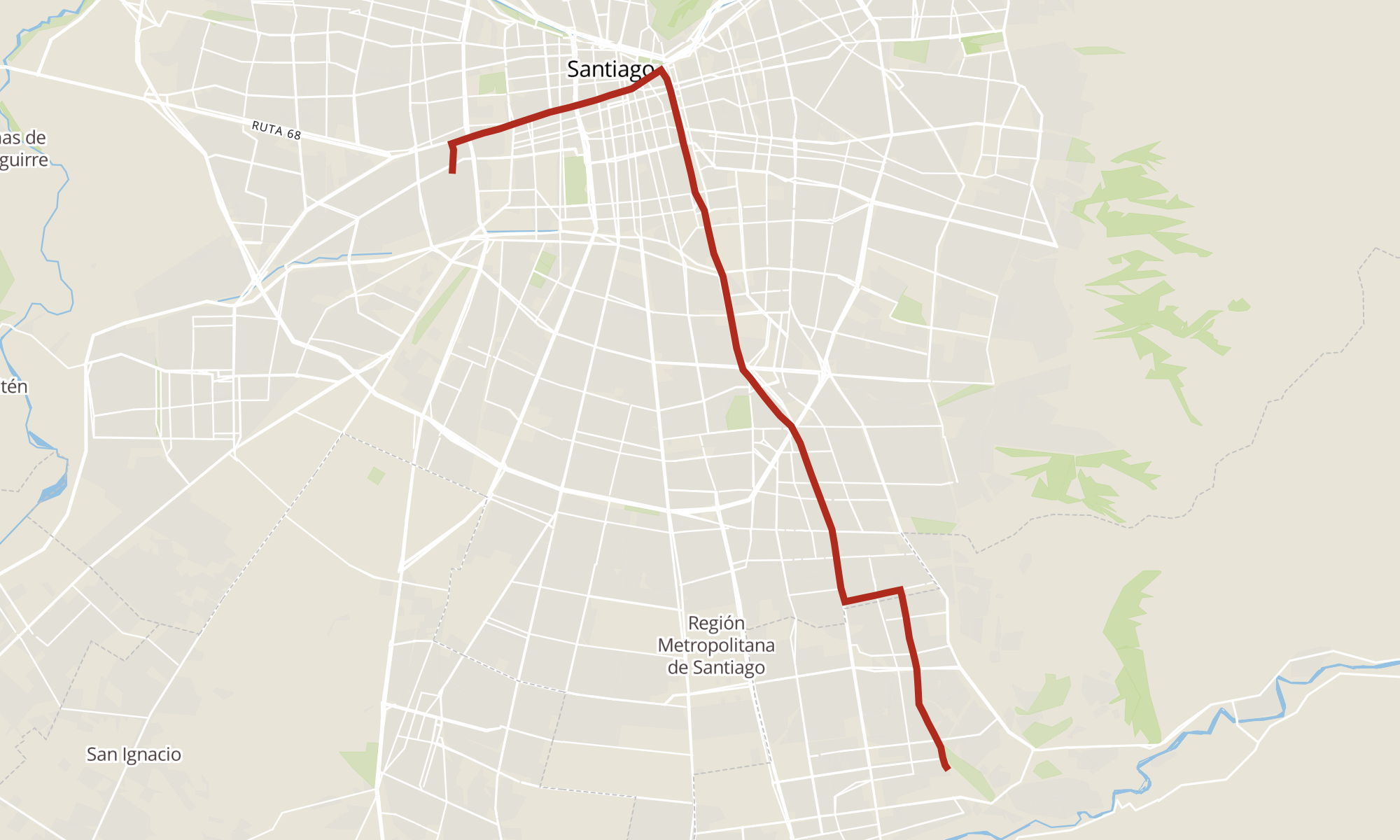 Sentido: PI1840-General Amengual / esq. Av. 5 de Abril ‎→ PF879-Av. Paseo Pie Andino / esq. Av. Eduardo Cordero (76 paradas)