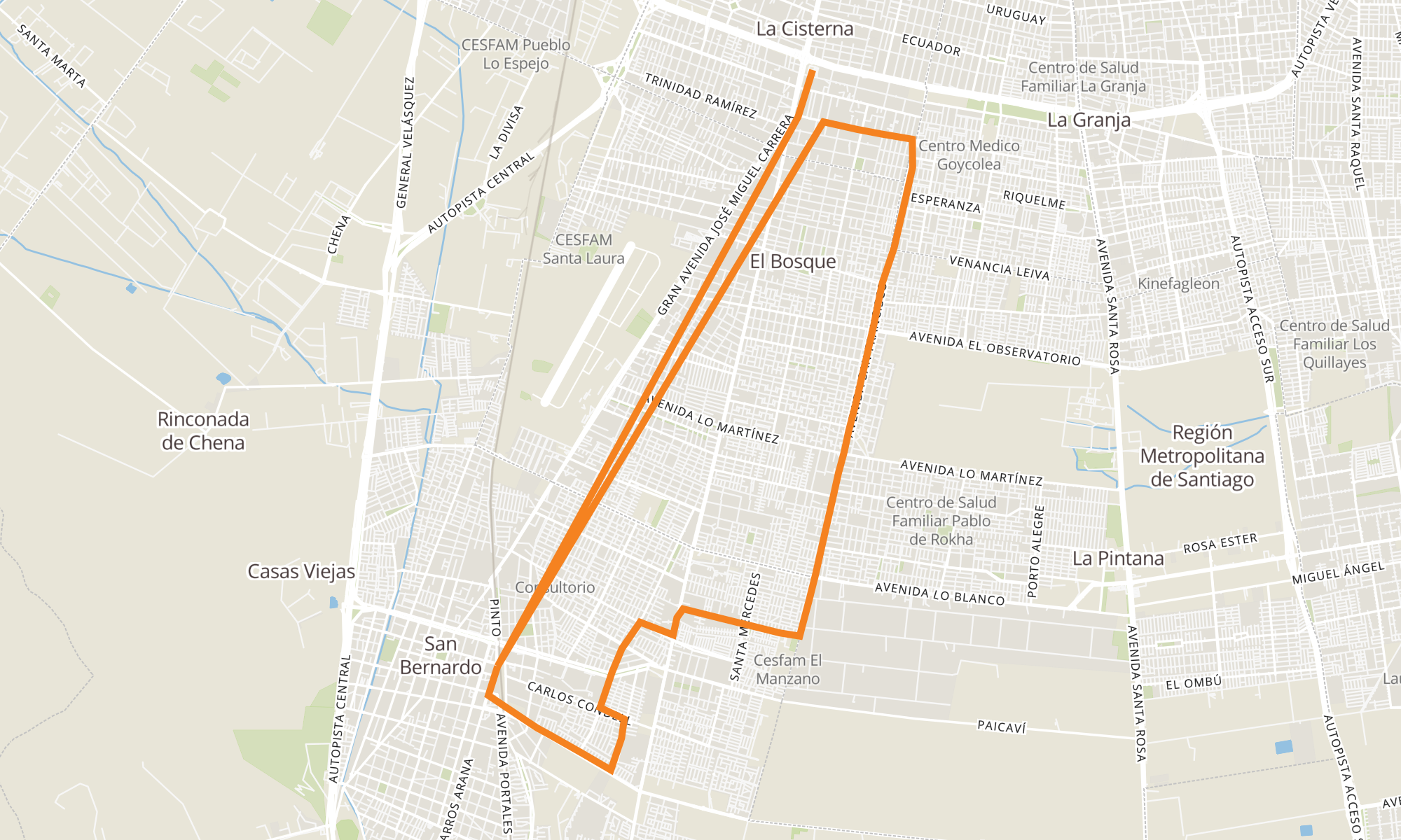 | PG1583-Parada / Est. Intermodal La Cisterna | PG741-Parada 1 / Est. San Bernardo |