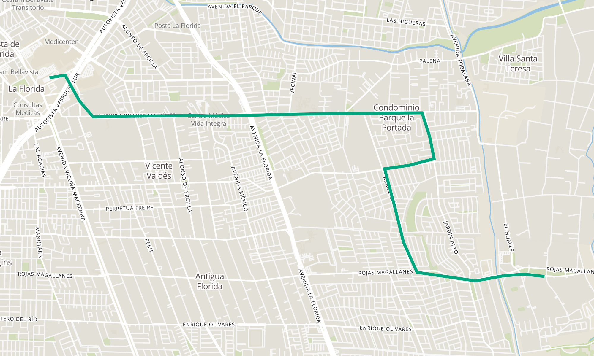 | PE1282-Parada / Est. Intermodal de La Florida | PE1377-Rojas Magallanes / esq. Las Nalcas Sur |
