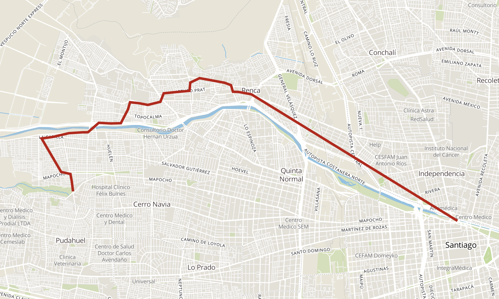 | PJ429-Avenida La Estrella / esq. Los Conquistadores | PA380-Parada 4 / Estación Mapocho |