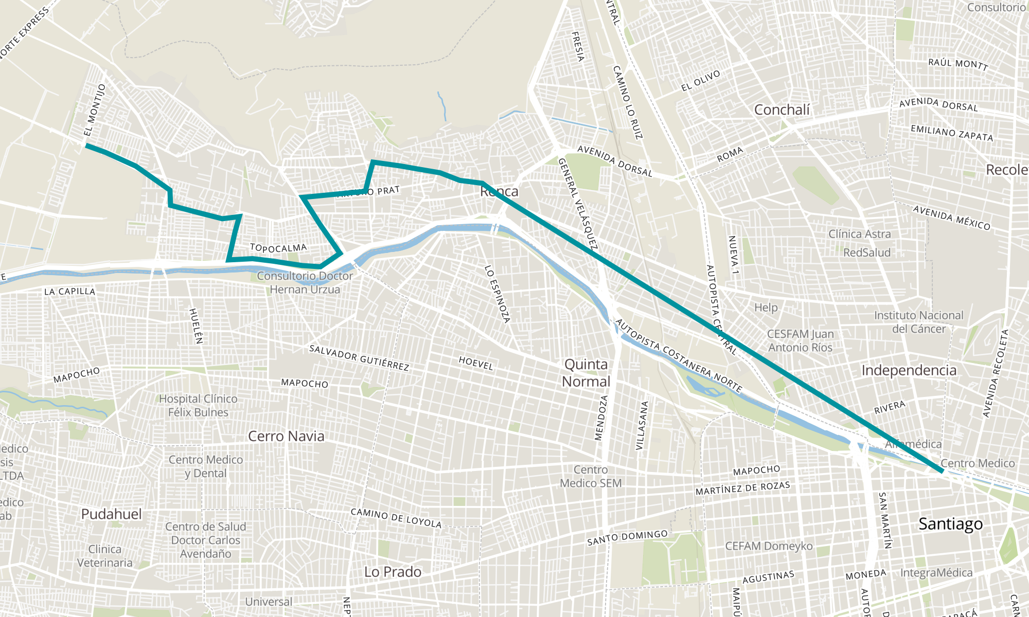 | PA380-Parada 4 / Estación Mapocho | PB1861-Miraflores / esq. El Montijo |