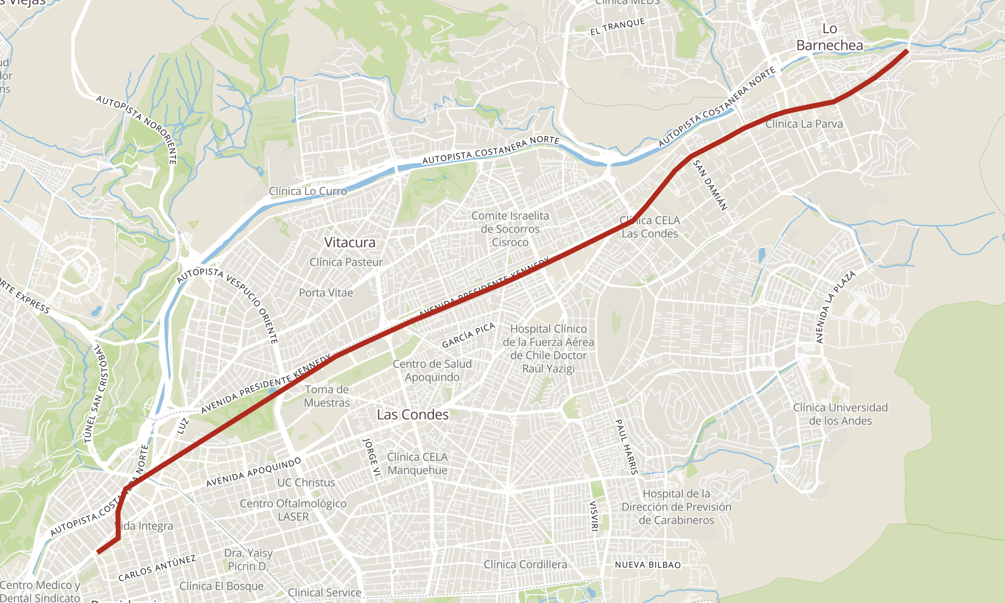 | PC203-Parada 3 / (M) Pedro de Valdivia | PC358-Avenida Las Condes / esq. Raúl Labbé |