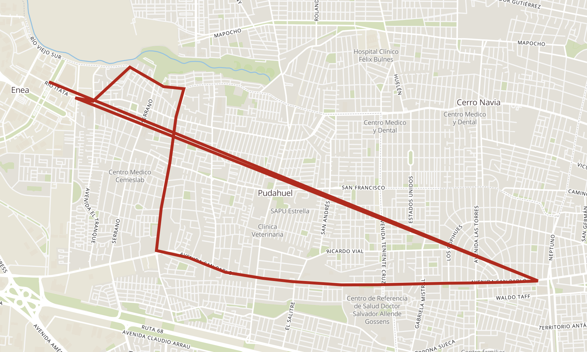 | PJ793-Los Maitenes / esq. Río Itata | PJ128-Parada 6 / (M) San Pablo |