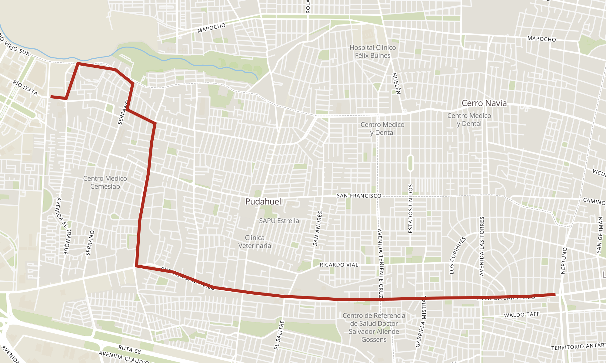 | PJ149-Parada 7 / (M) San Pablo | PJ1721-Río Itata / esq. Av. J. Guzmán Riesco |