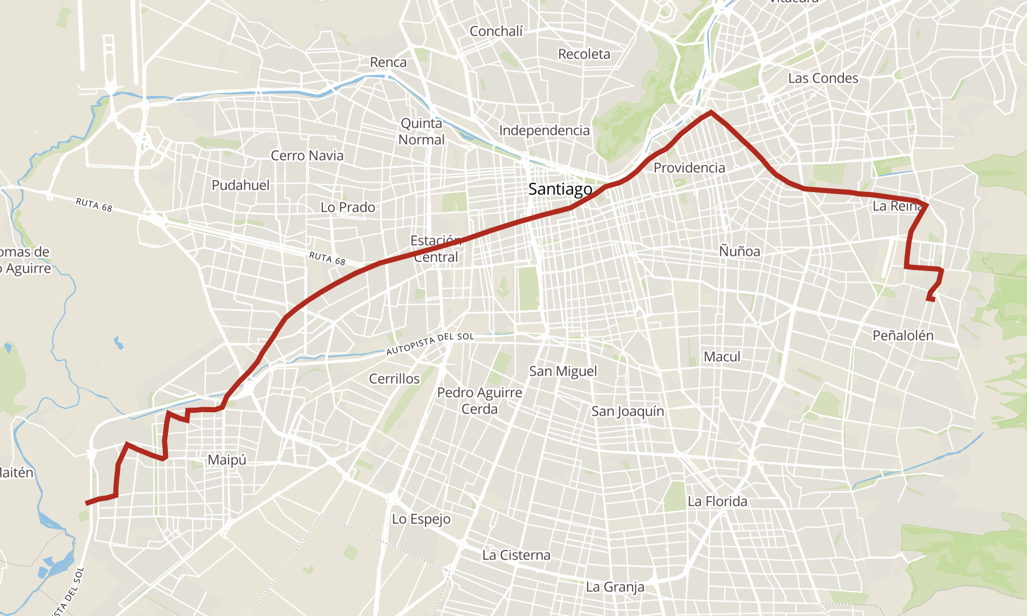 | PD1215-Río Claro / esq. Valle Hermoso | PI1858-Parada / Terminal Las Acacias |