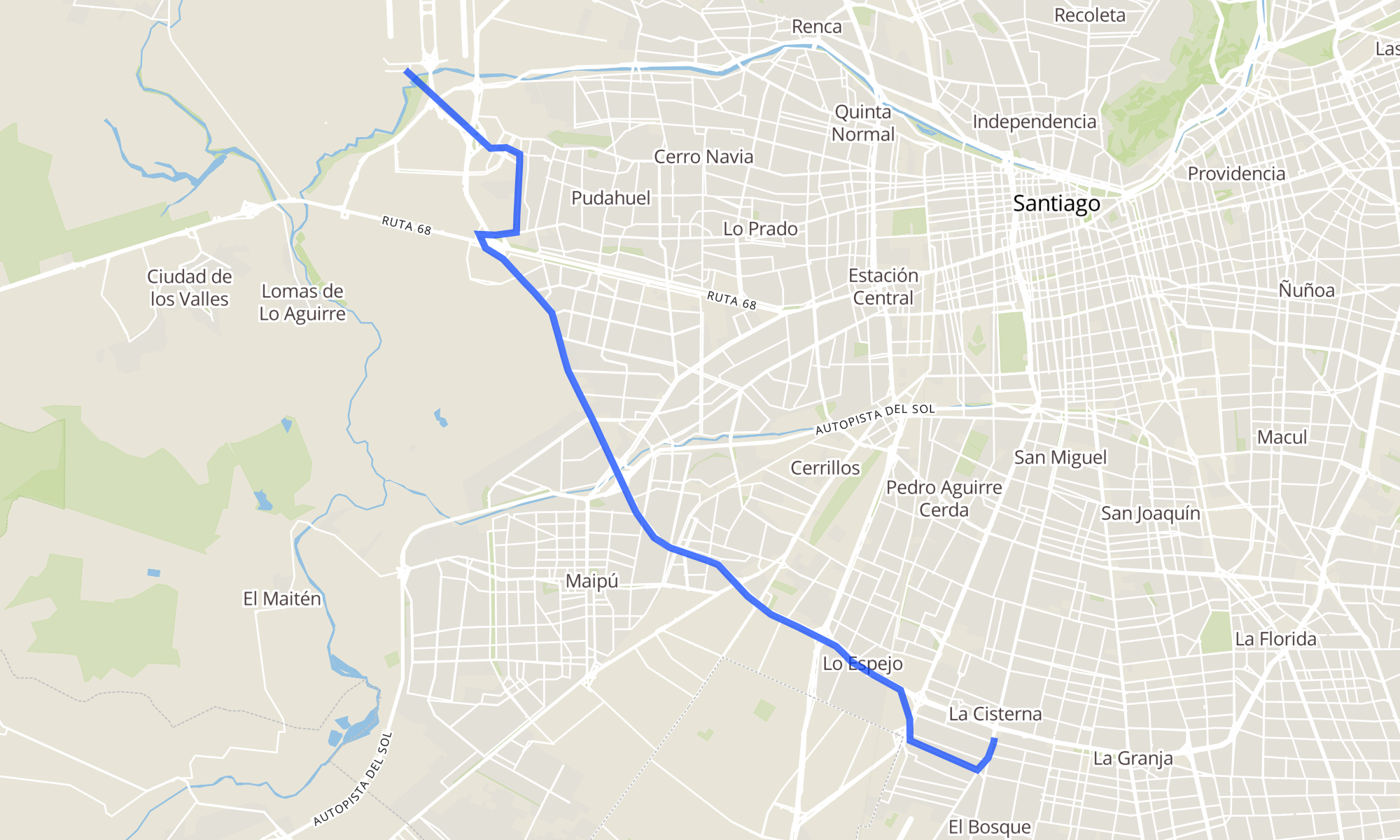 | PJ2028-Parada 3 / EIM Aeropuerto @ Red Movilidad | PG1573-Parada 5 / (M) La Cisterna |