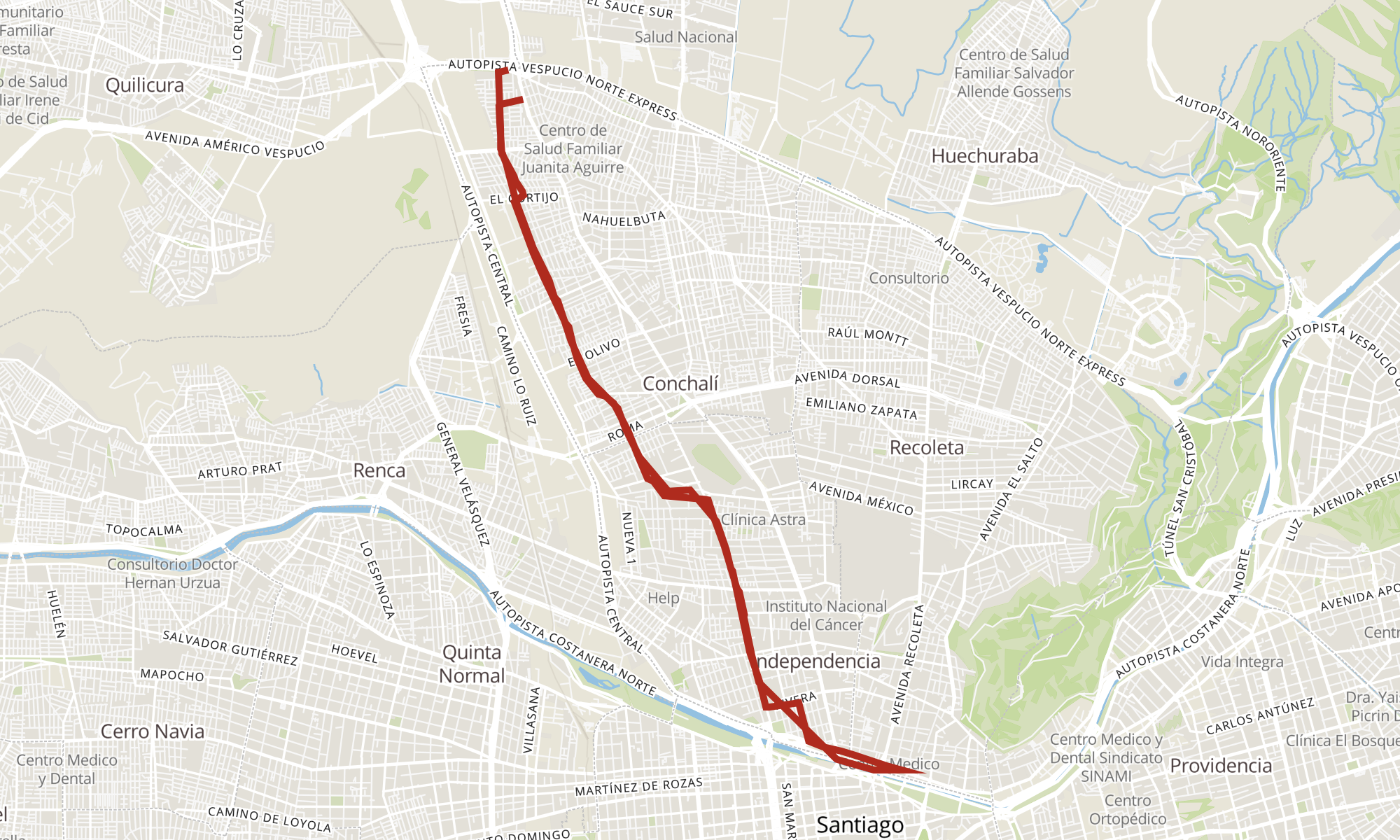 | PB186-Av. Independencia / esq. H. de Iquique | PB1000-Parada 5 / (M) Los Libertadores |