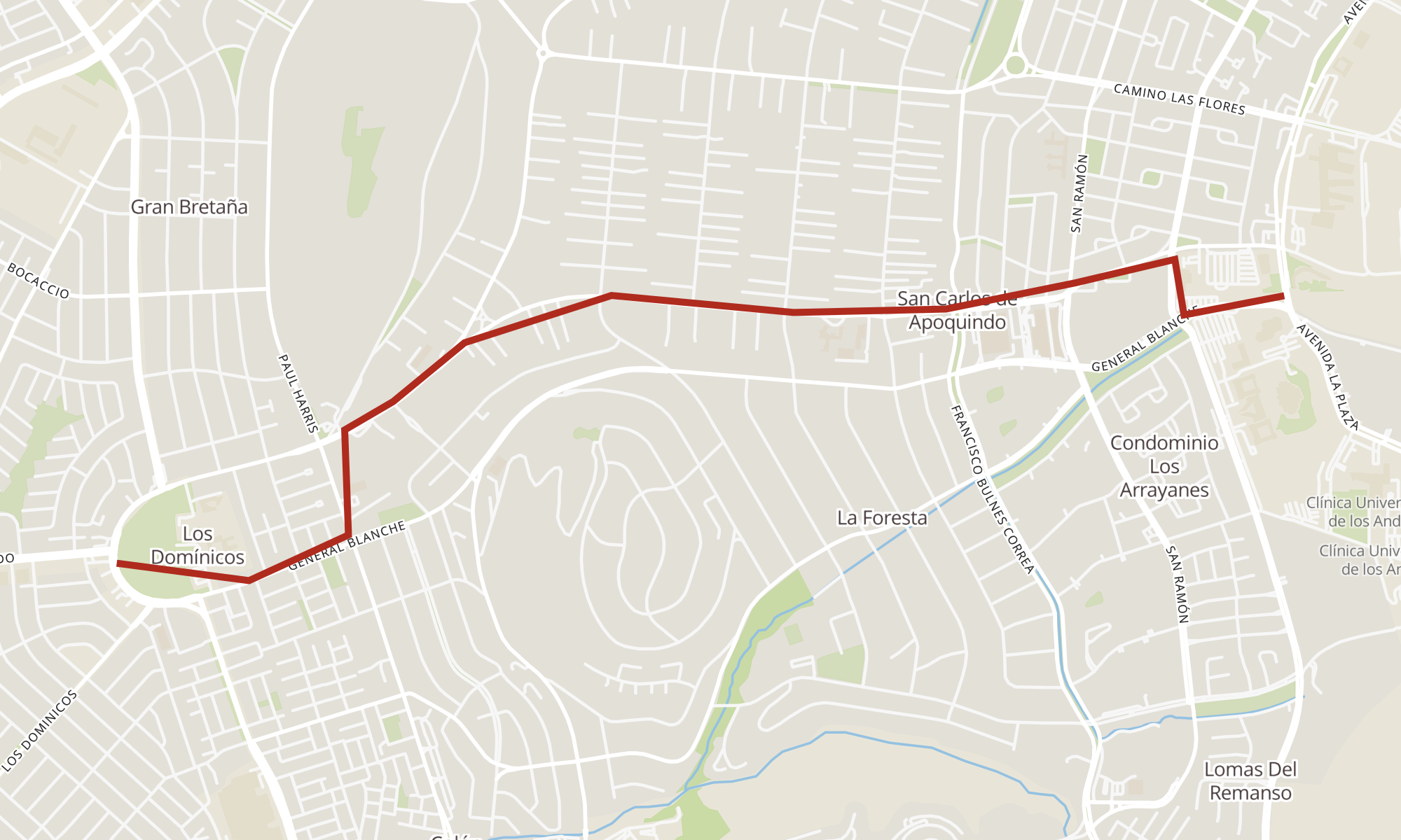 | PC622-Avenida La Plaza / esq. Av. Mons. A. del Portillo | PC1068-Parada 2 / (M) Los Dominicos |
