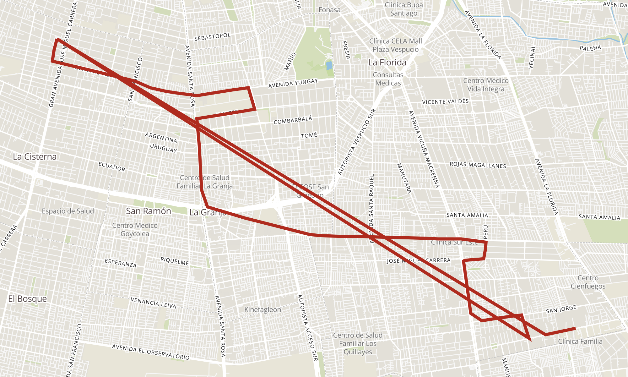 | PE340-Diego Portales / esq. La Alauda | PG1585-Parada / Est. Intermodal Lo Ovalle |