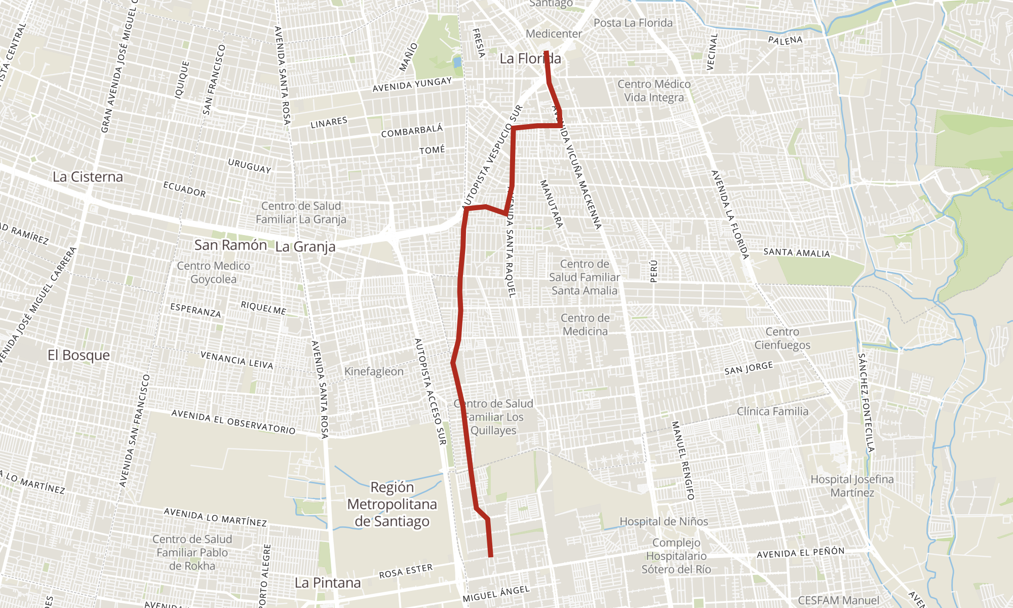 | PF1010-Rosa Ester / esq. Los Cipreses | PE1282-Parada / Est. Intermodal de La Florida |