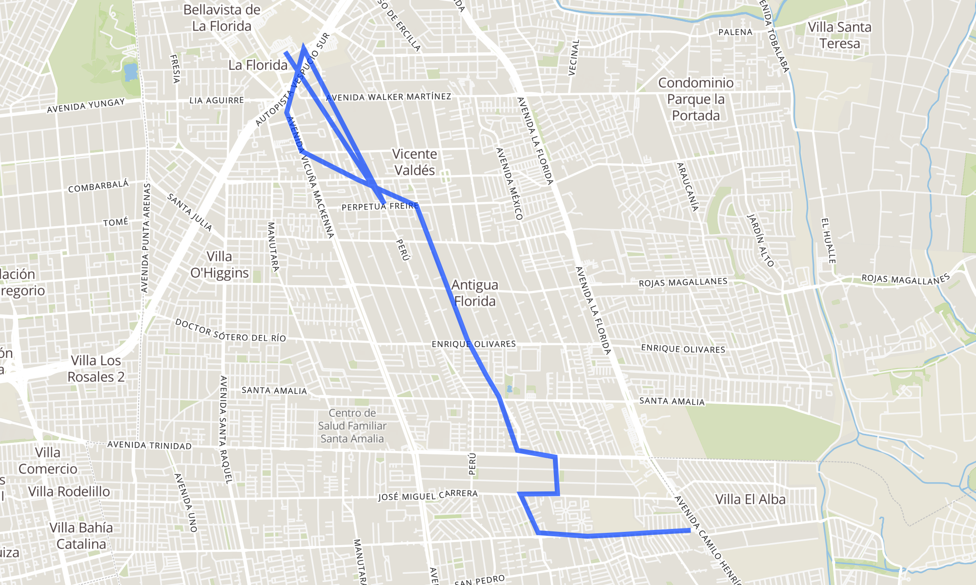 | PE1282-Parada / Est. Intermodal de La Florida | PE312-Parada 3 / Paradero 23 Av. La Florida |