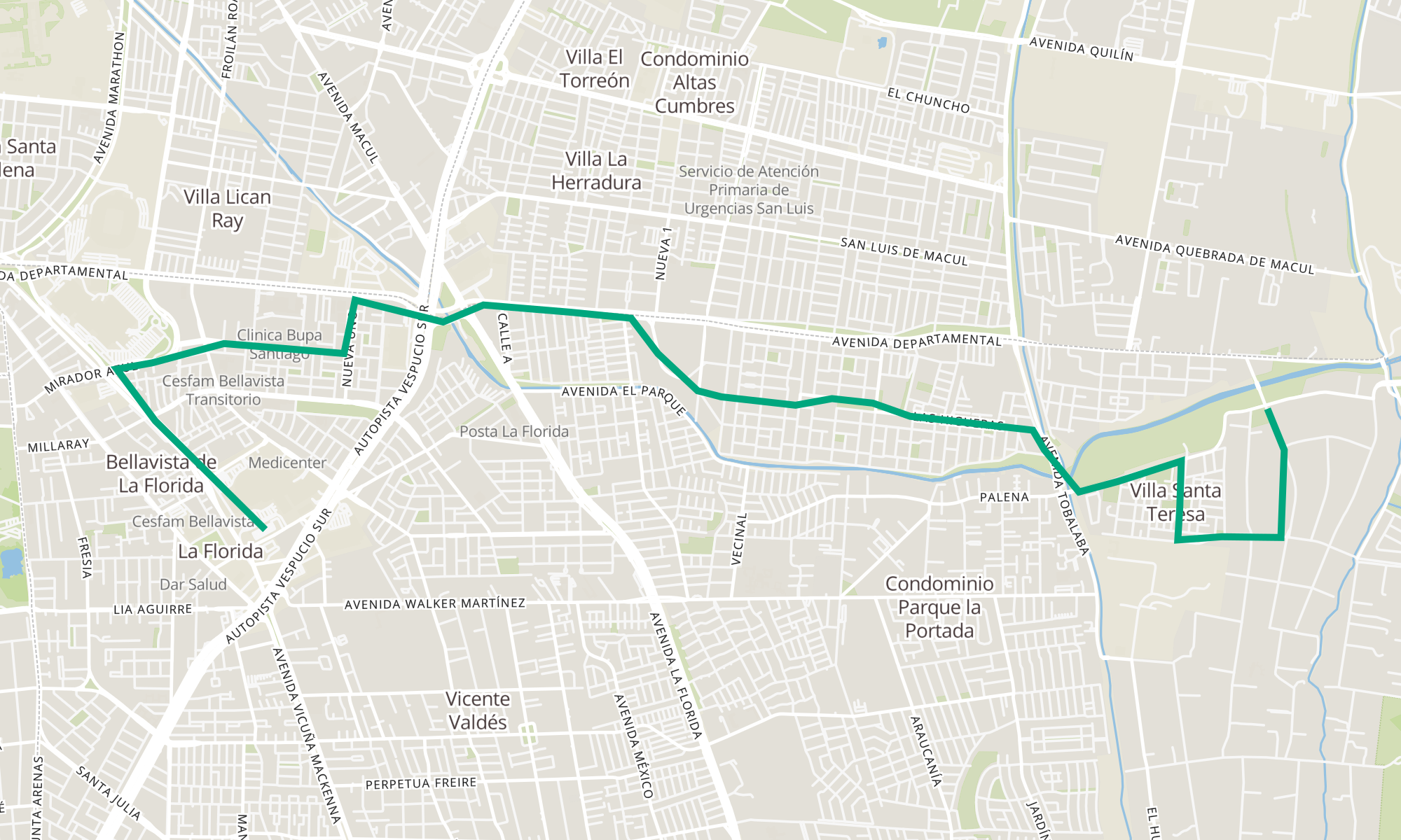 | PE1282-Parada / Est. Intermodal de La Florida | PE1338-Av. Las Perdices / esq. María Angélica |