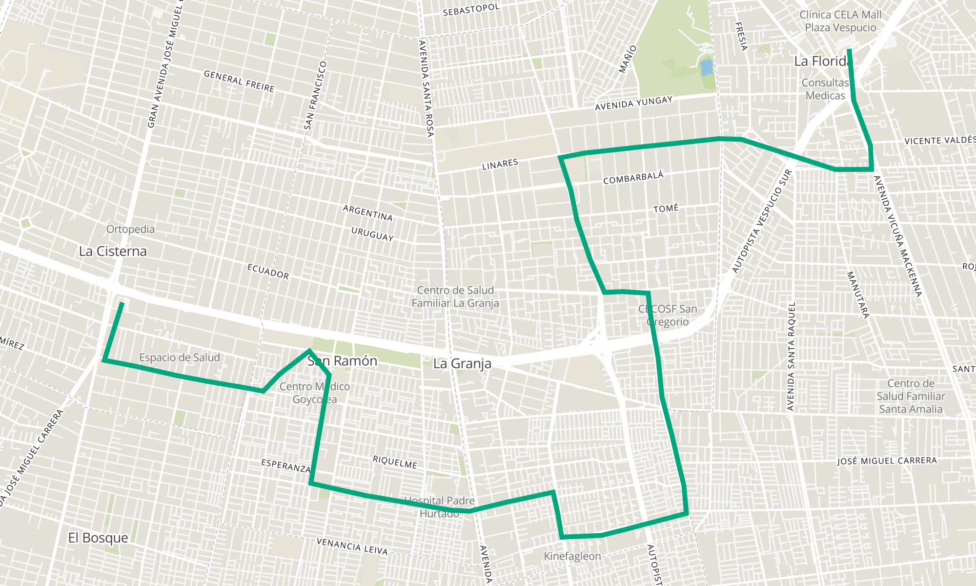| PG1583-Parada / Est. Intermodal La Cisterna | PE1282-Parada / Est. Intermodal de La Florida |
