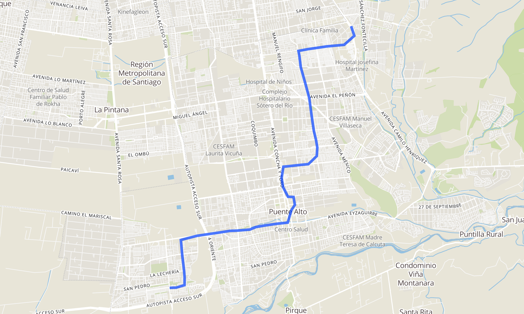 Recorrido de la línea F10: Mall Plaza Tobalaba