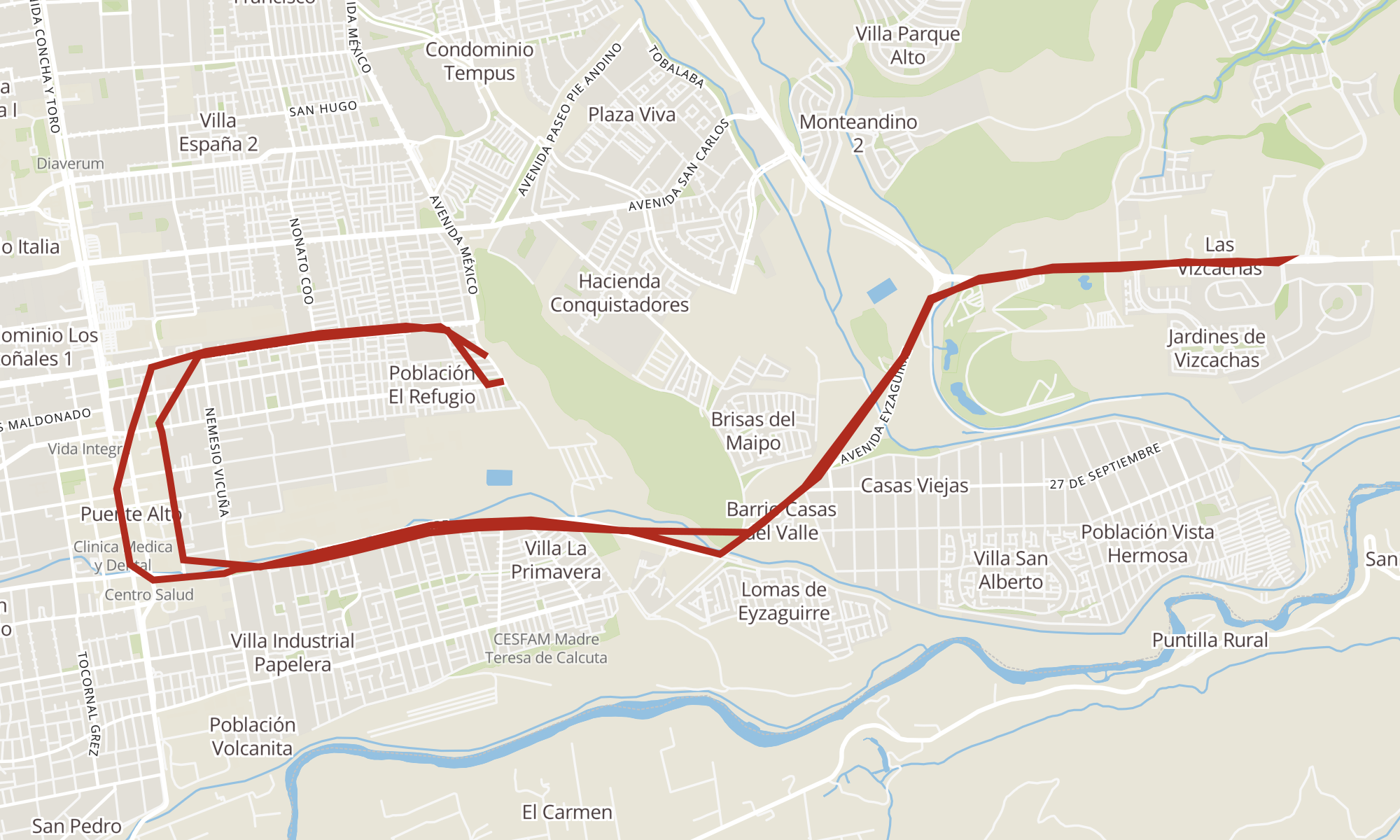 Sentido: PF879-Av. Paseo Pie Andino / esq. Av. Eduardo Cordero ‎→ PF880-Av. Paseo Pie Andino / esq. Cerro Providencia (63 paradas)