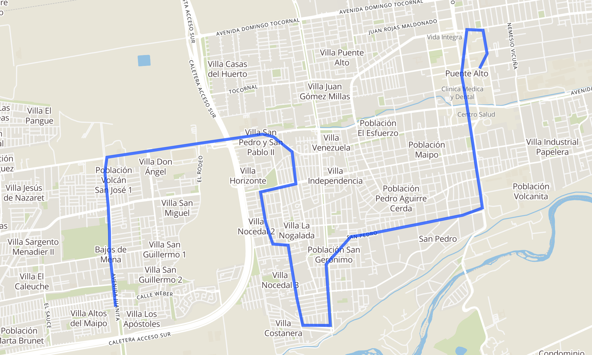 PF212-Parada 5 / (M) Plaza de Puente AltoPF494-Avenida Juanita / esq. Río Cochiguas