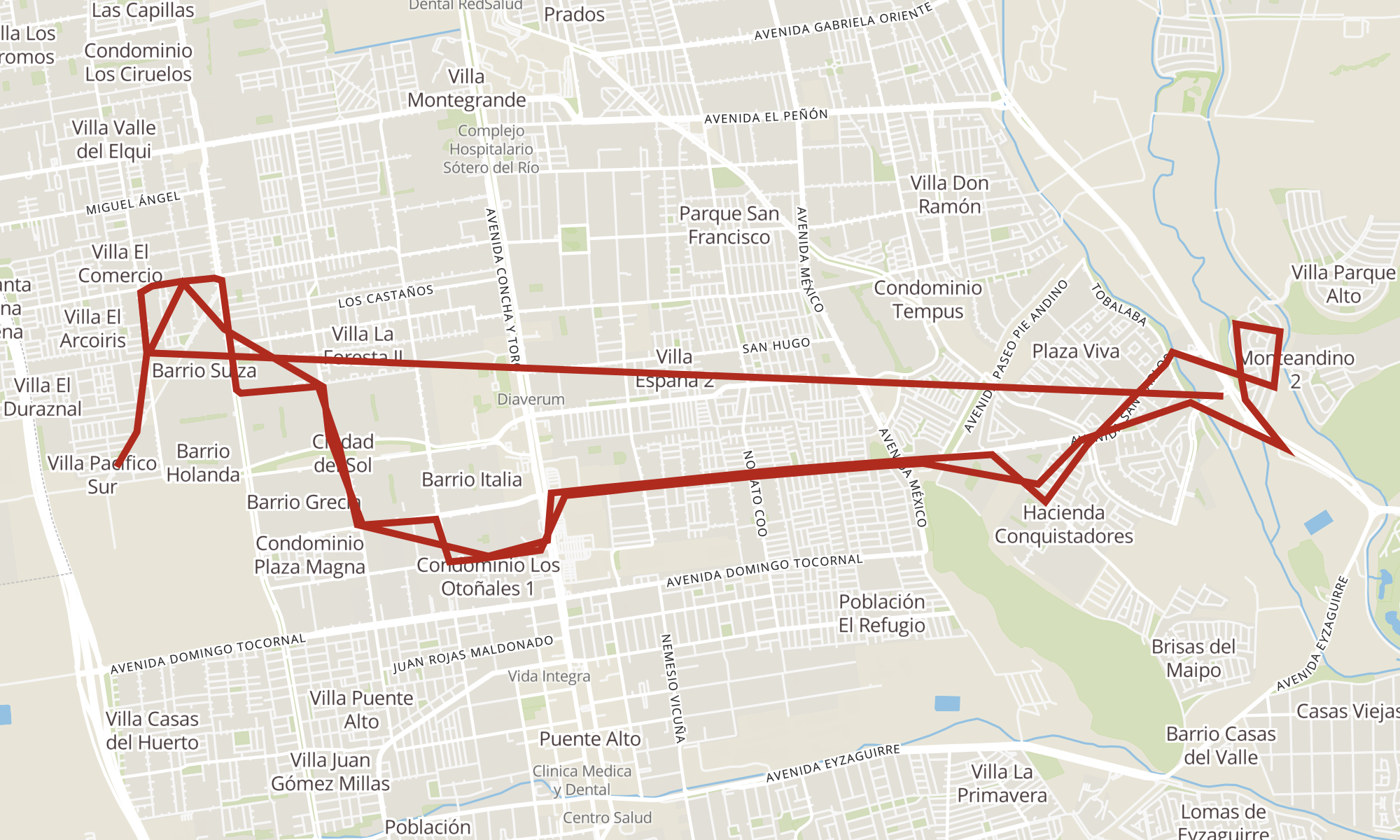 ¿A qué hora pasa? Descarga la app desde aquí para conocer cuándo viene el recorrido © Villa Padre Hurtado - San Carlos Oriente de la línea F26, su frecuencia y horarios en tiempo real gracias a la comunidad de usuarios.