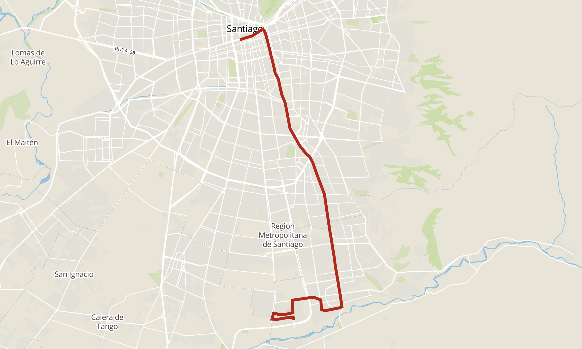 | PA215-Parada 5 / (M) La Moneda | PF494-Avenida Juanita / esq. Río Cochiguas |