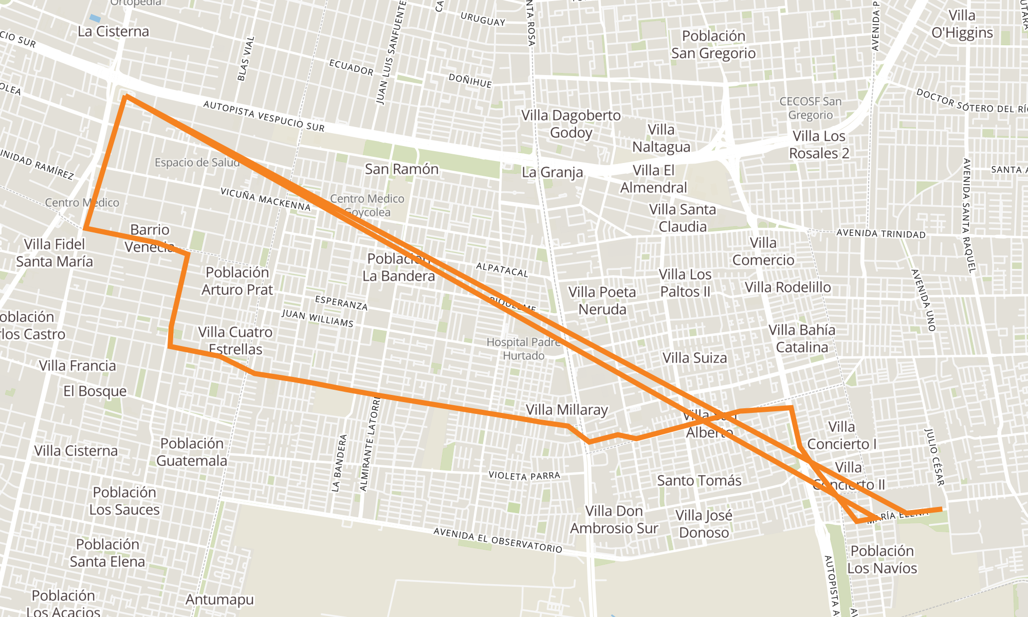 | PE1268-María Elena / esq. San Mateo | PG1583-Parada / Est. Intermodal La Cisterna |
