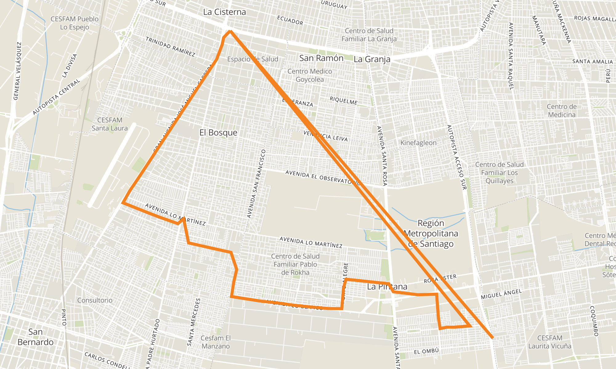 | PF947-La Serena / esq. Mauvidanche | PG212-Parada 4 / (M) La Cisterna |