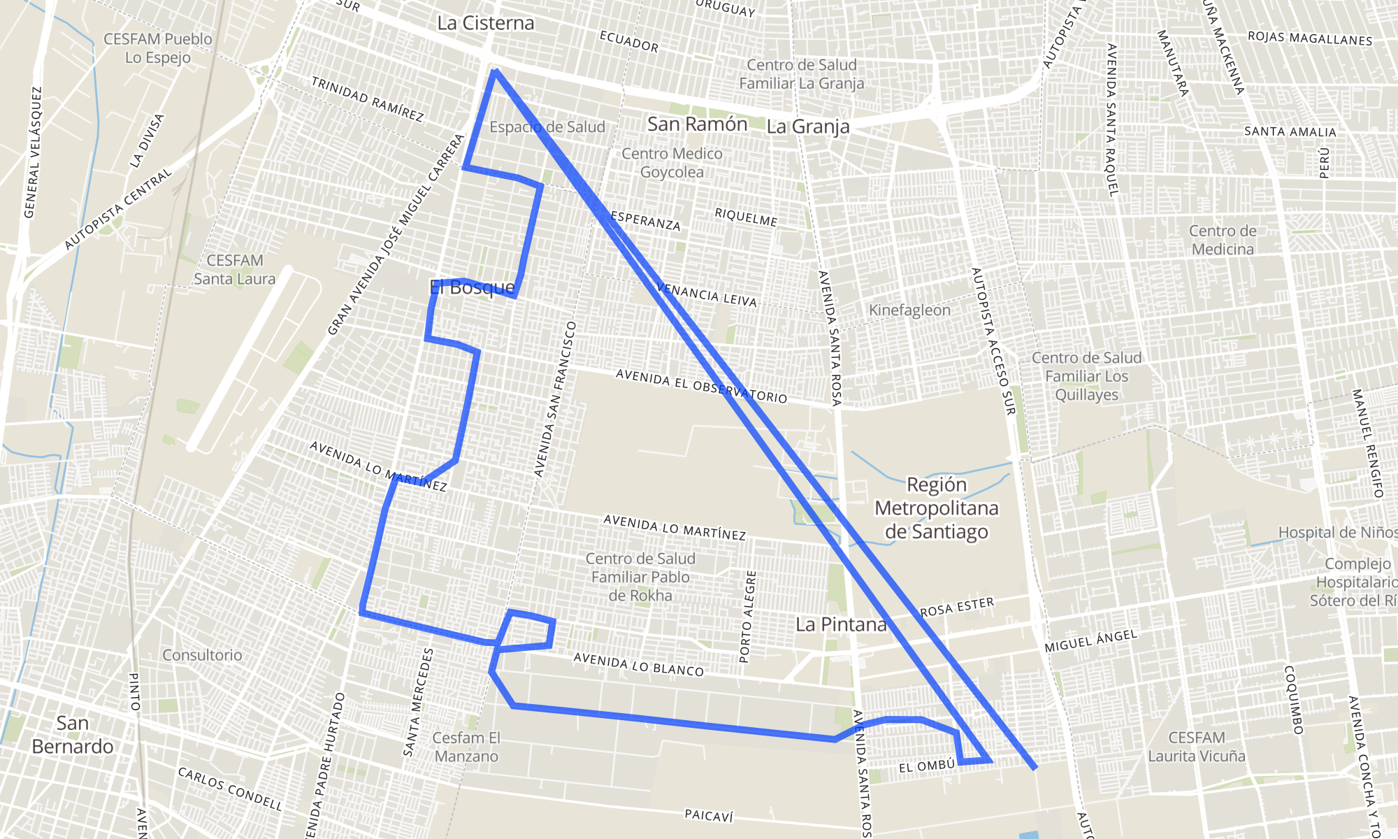 | PG1767-Calle 6 / esq. La Primavera | PG1583-Parada / Est. Intermodal La Cisterna |