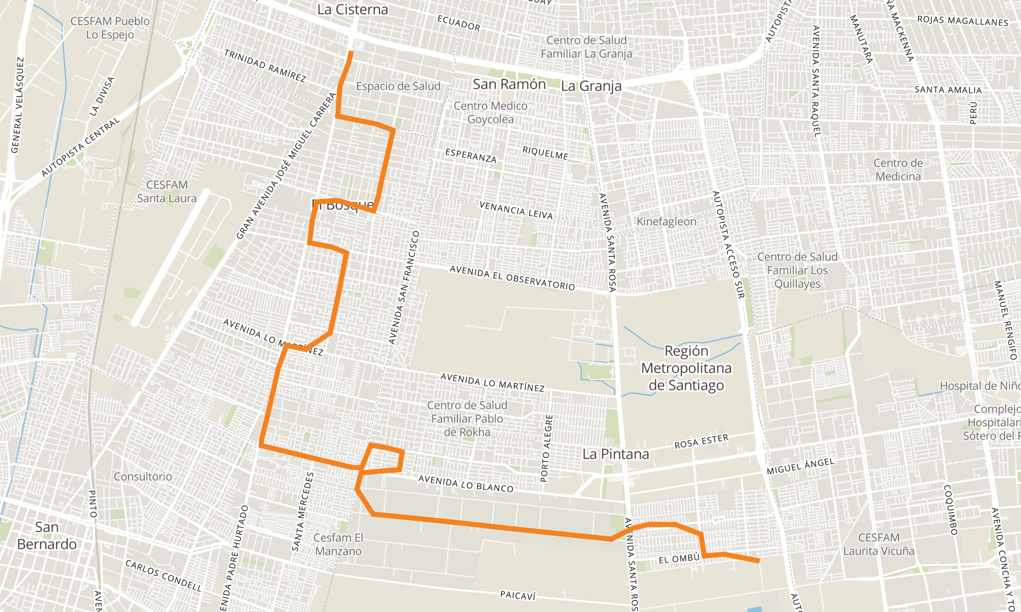 | PG1767-Calle 6 / esq. La Primavera | PG1573-Parada 5 / (M) La Cisterna |