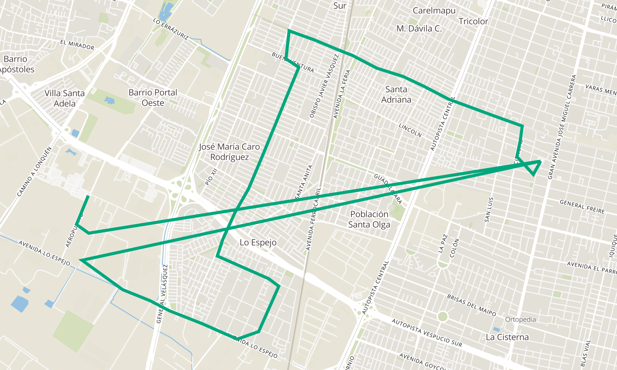 | PI643-Avenida Aeropuerto / esq. Vista Clara | PG1585-Parada / Est. Intermodal Lo Ovalle |