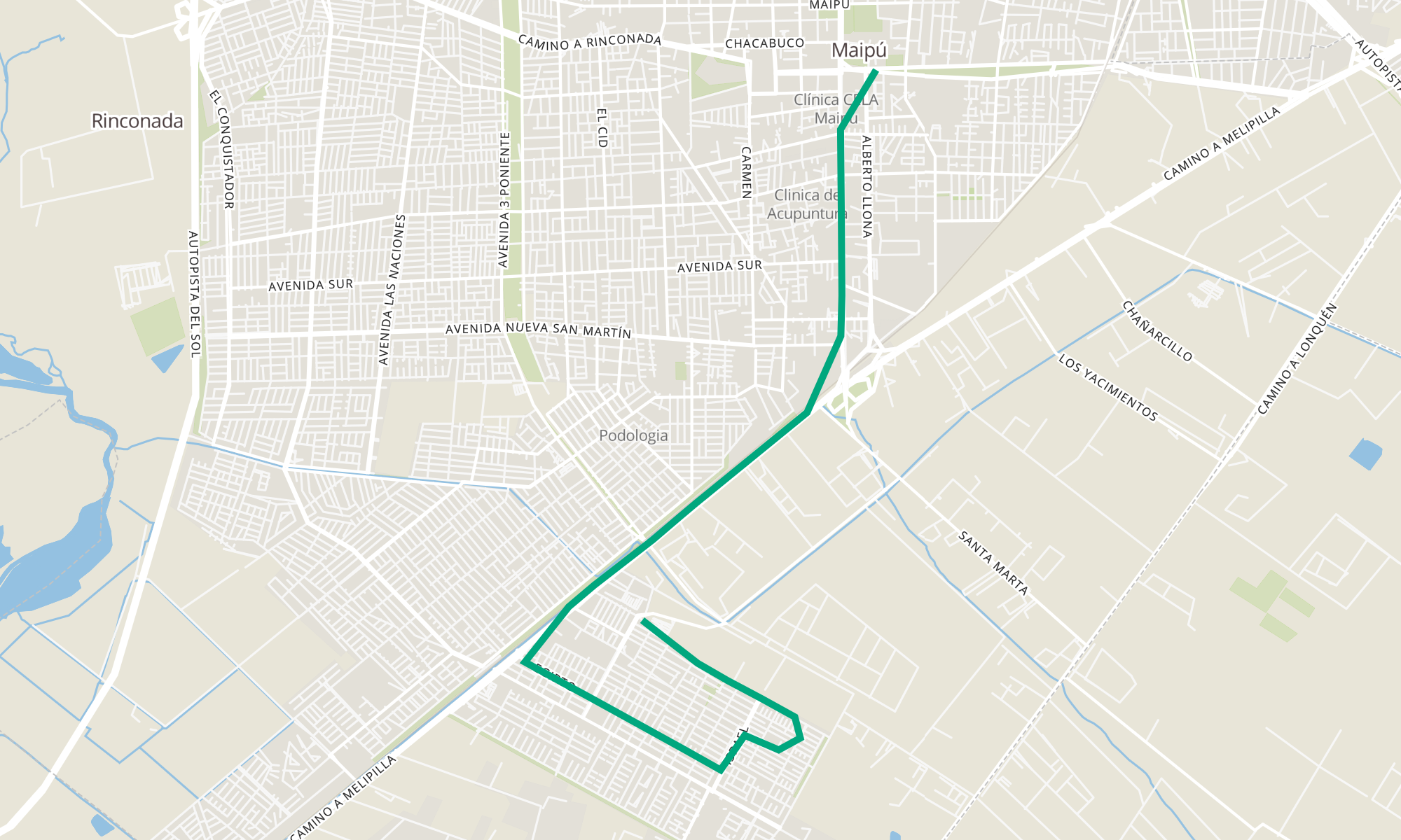 | PI228-Parada 5 / (M) Plaza de Maipú | PI338-Judea / esq. Jorge Guerra |