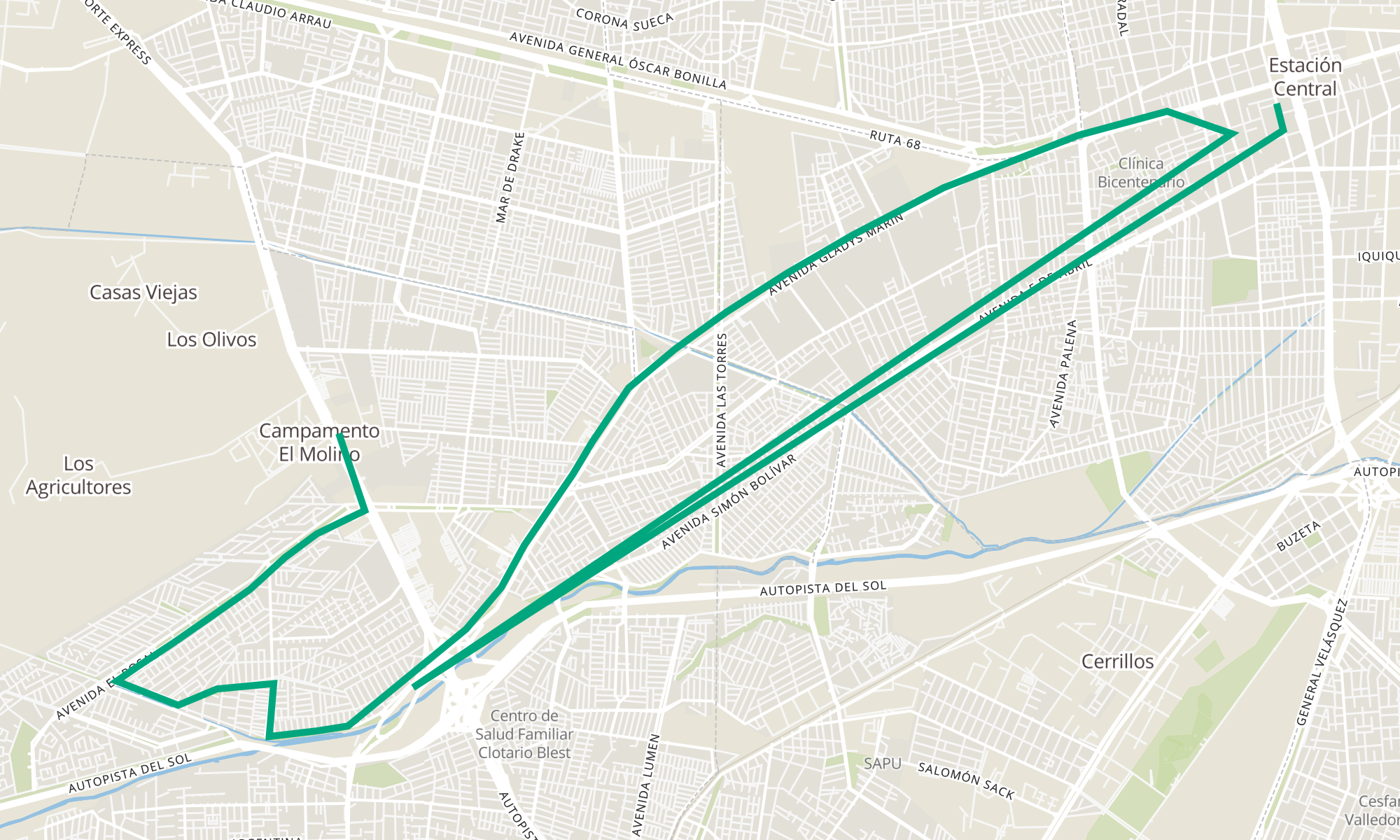 | PI1230-Parada 5 / (M) San Alberto Hurtado | PI239-Parada / Colegio Alicante de Maipú |
