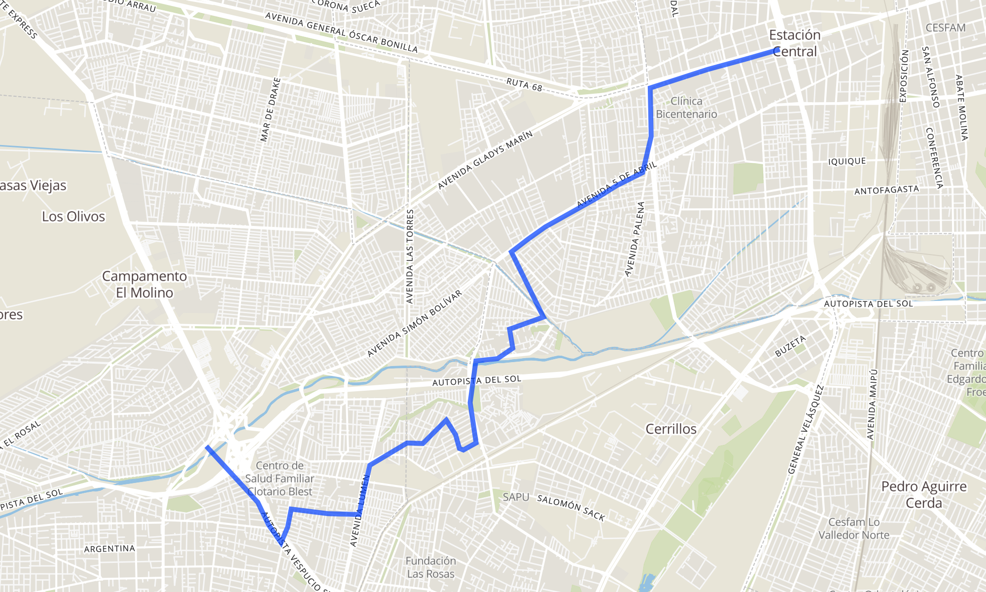 | PI1788-Parada / Est. Intermodal Del Sol | PI401-Parada 4 / (M) San Alberto Hurtado |