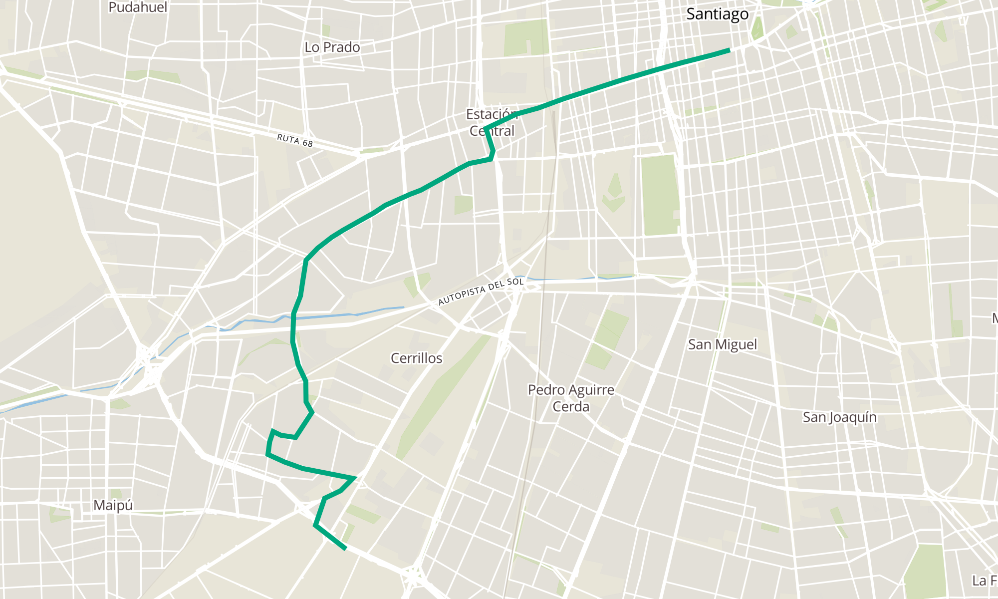 | PA374-Parada 10 / (M) Santa Lucía | PI356-Parada / Mall Plaza Oeste |