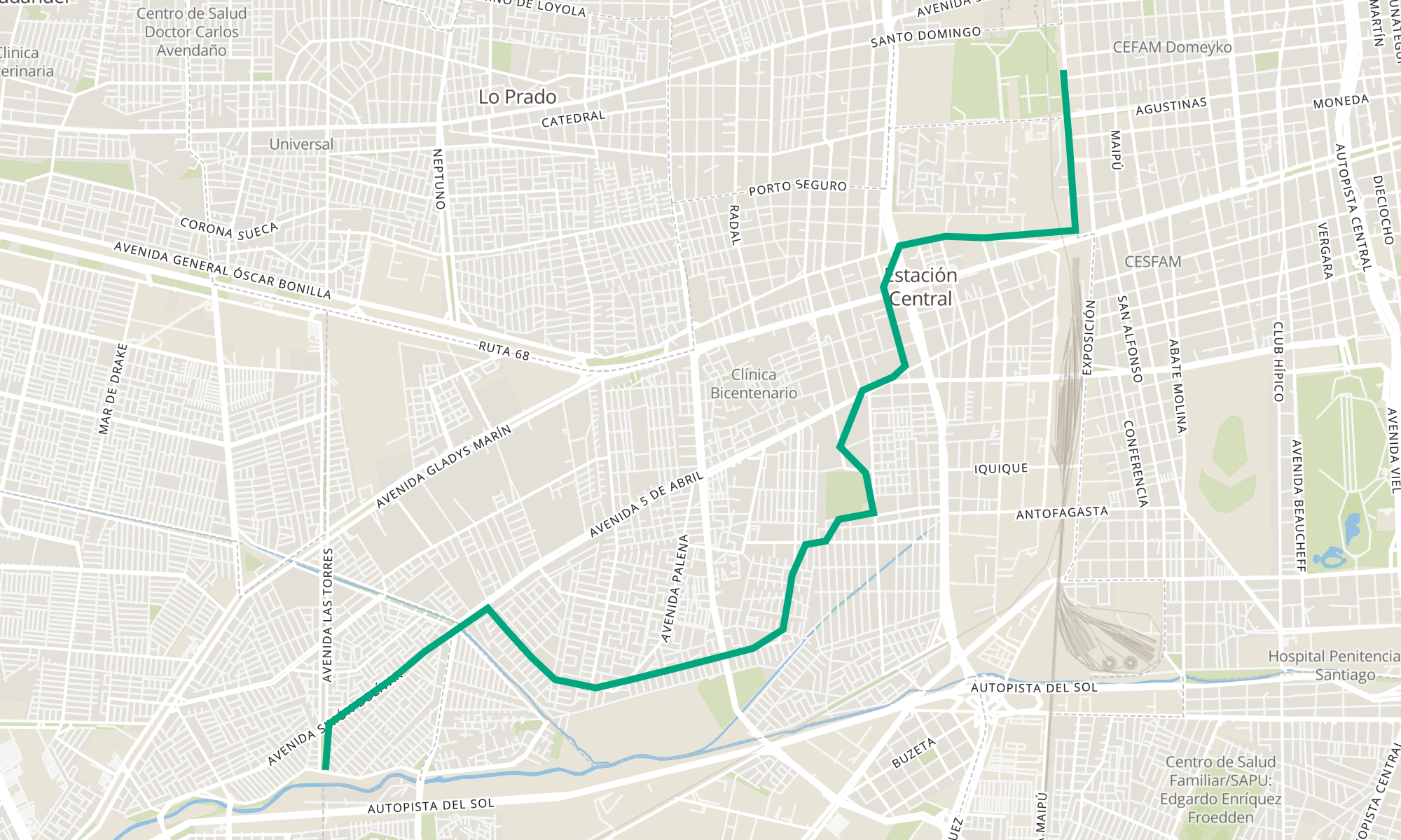 | PA191-Parada 4 / (M) Quinta Normal | PI1196-Avenida Las Torres / esq. Isabel Riquelme |