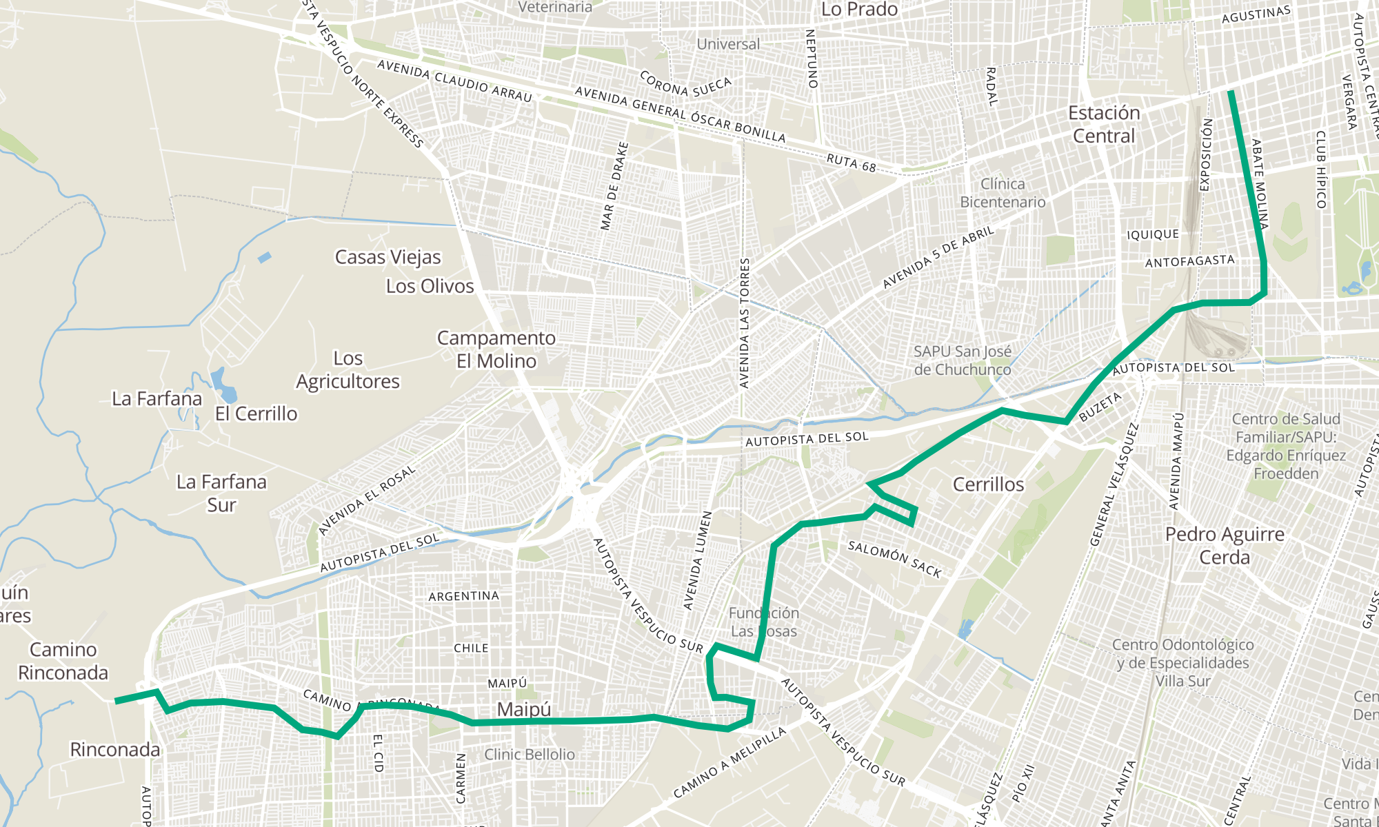 | PI949-Camino a Rinconada / esq. Autopista Del Sol | PA15-Parada / Estadio Victor Jara |