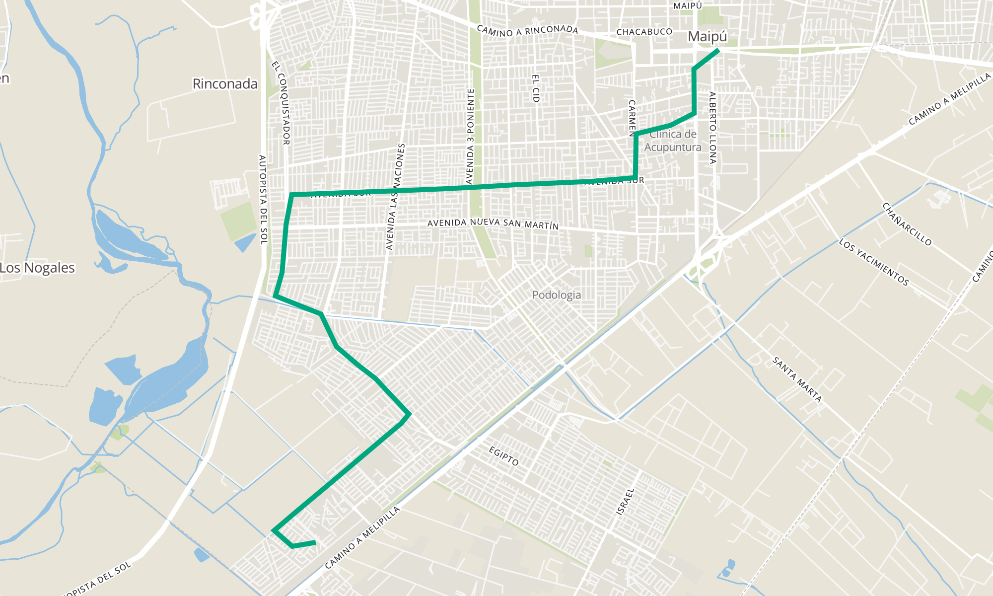 | PI228-Parada 5 / (M) Plaza de Maipú | PI1550-San René / esq. San Rigoberto |
