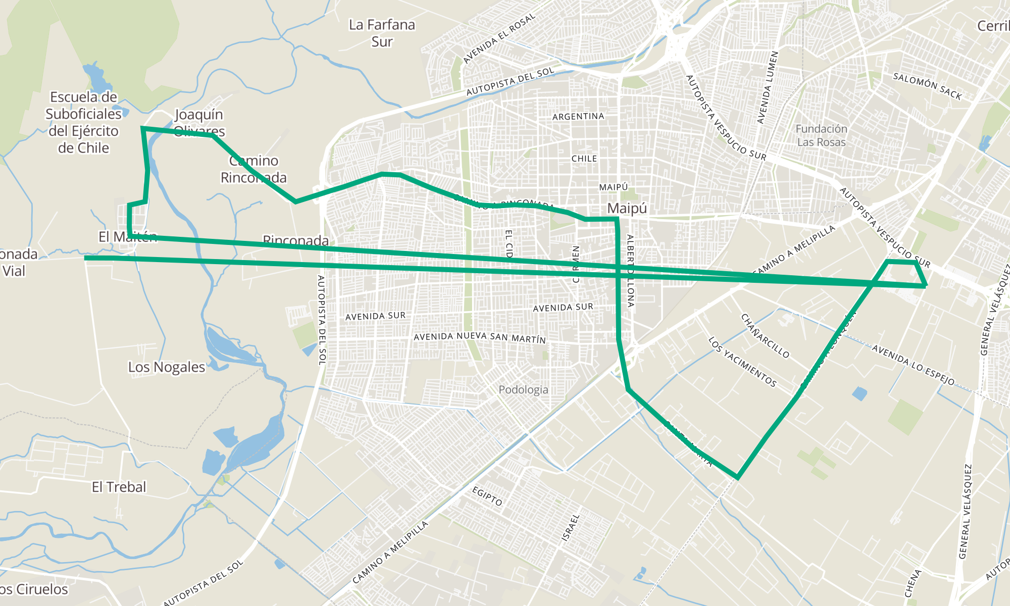 | PI942-Camino a Rinconada / esq. Camino El Trebal | PI642-Parada / Homecenter - Oeste |