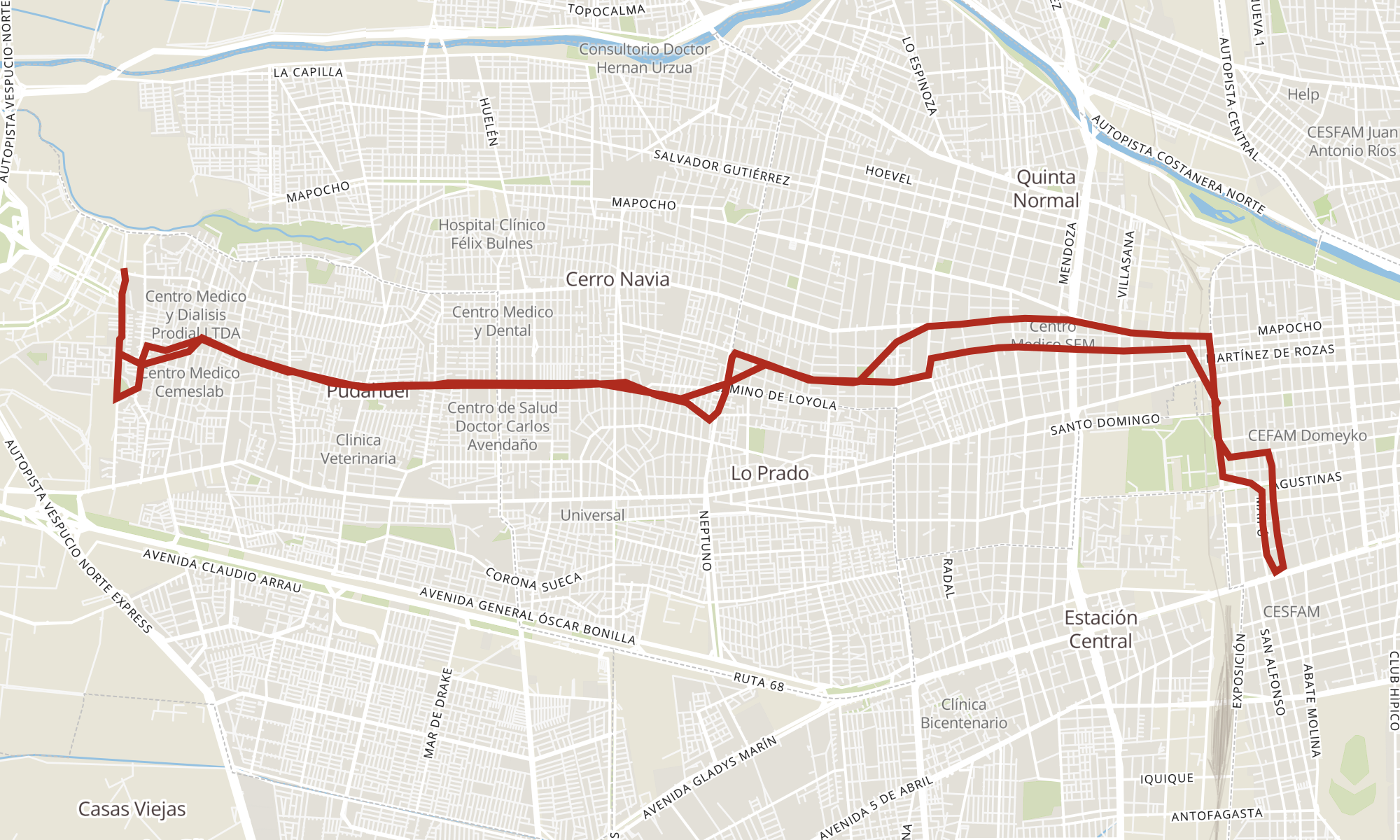 Sentido: PJ818-Av.J.M.Guzmán Riesco / esq. Río Itata ‎→ PJ681-Av.J.M.Guzmán Riesco / esq. Iorana (93 paradas)