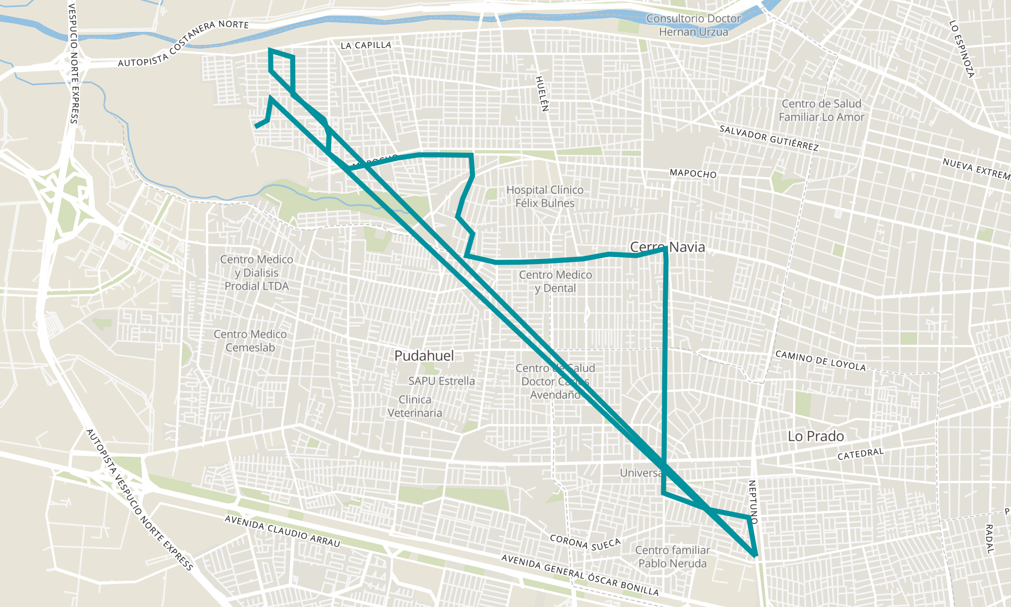 | PJ2000-Ventisquero / esq. Río Douro | PJ686-Parada 3 / (M) Neptuno |