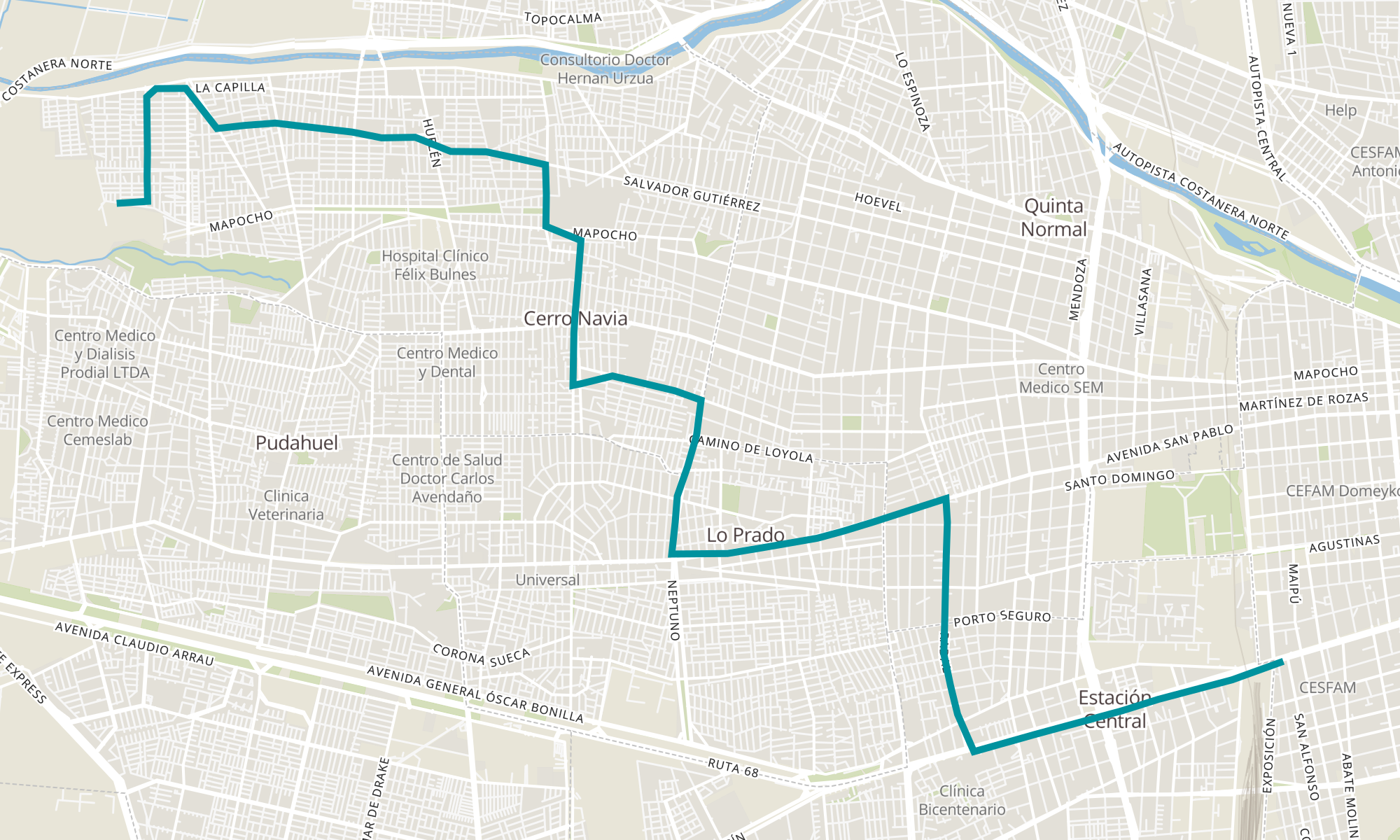 | PJ1986-Rodoviario / esq. Mar de Chile | PA368-Parada 4 / (M) Estación Central |