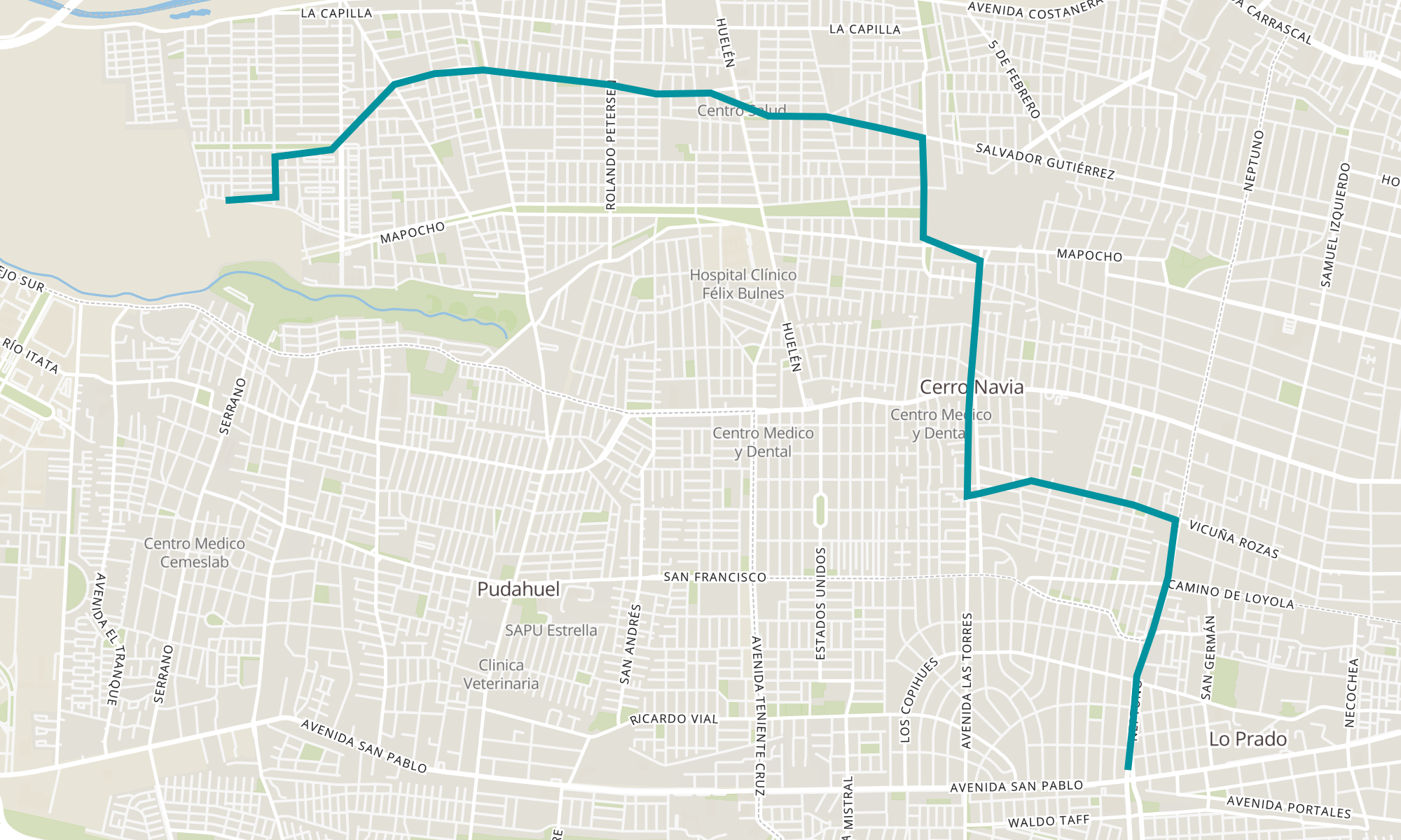 | PJ1986-Rodoviario / esq. Mar de Chile | PJ618-Parada 9 / (M) San Pablo |