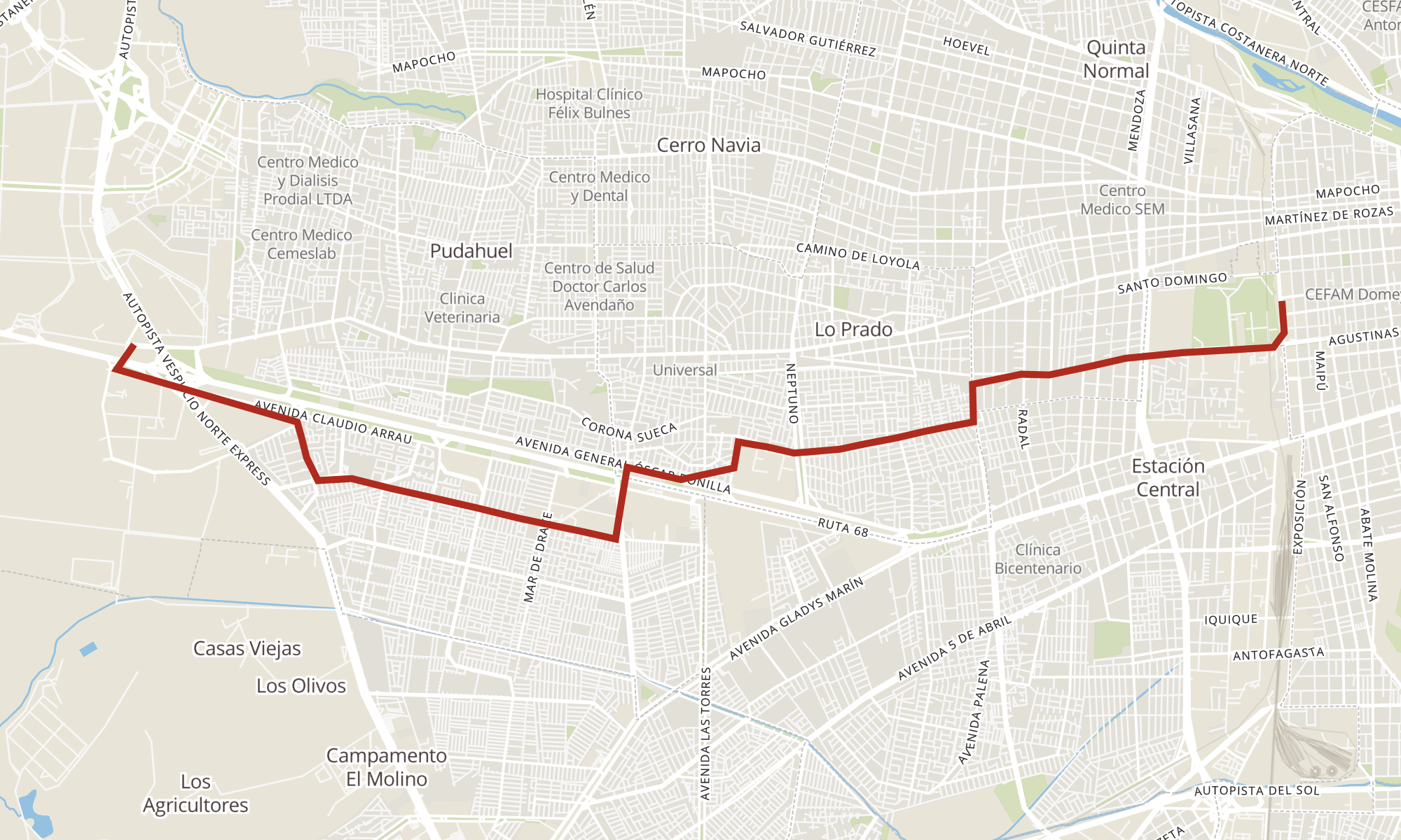 | PJ1726-Parada 2 / Rotonda Sn. Pablo | PA547-Parada 3 / (M) Quinta Normal |