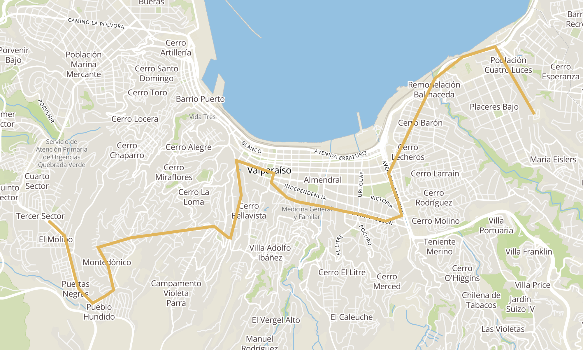 Recorrido de la línea 514: Yerbas Buenas- Cerro Alegre - 5ª Sector Playa Ancha