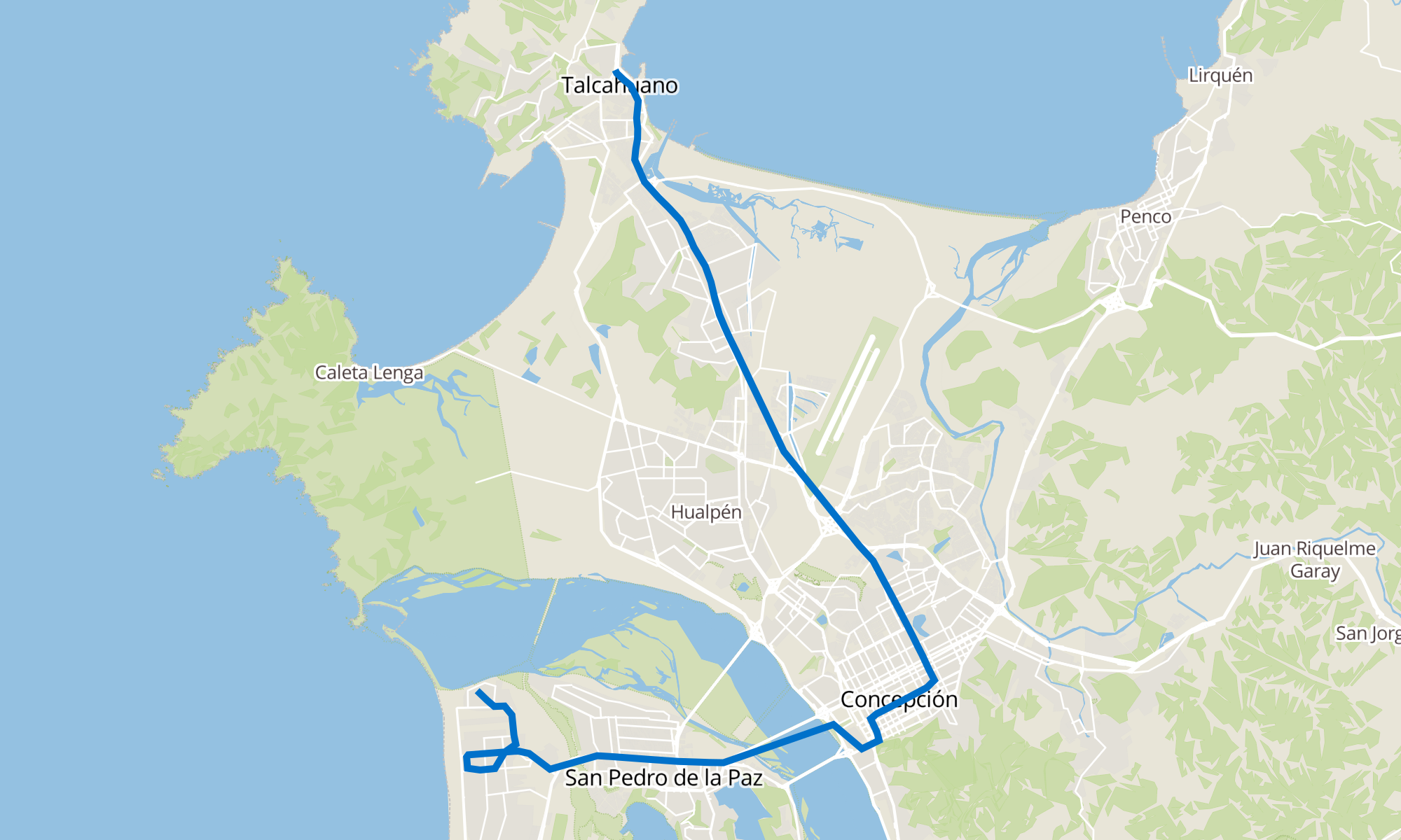 Sentido: Valdivia esq Colon ‎→ Mercurio esq Tierra Norte (74 paradas)