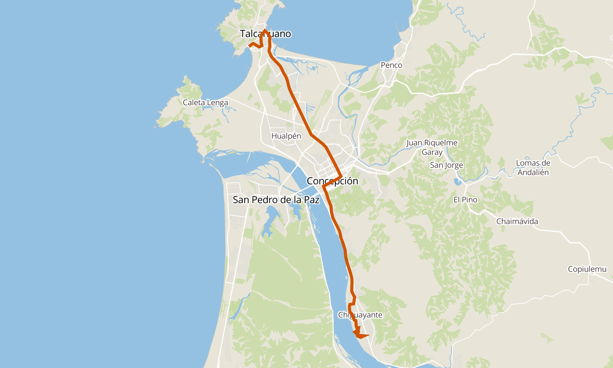 Recorrido de la línea 14HT: Chiguayante Sur 14T - Coquimbo
