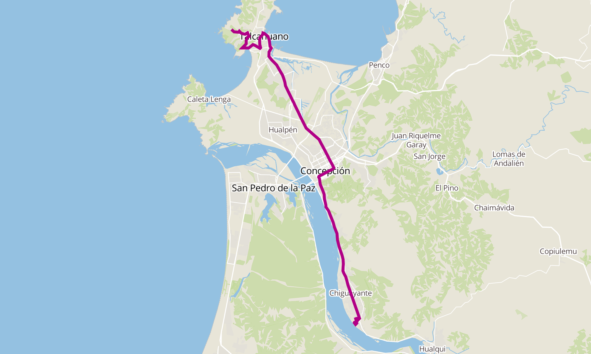 Sentido: Los Pinos esq Los Cipreses ‎→ Interior Urba Playa Pingueral (121 paradas)