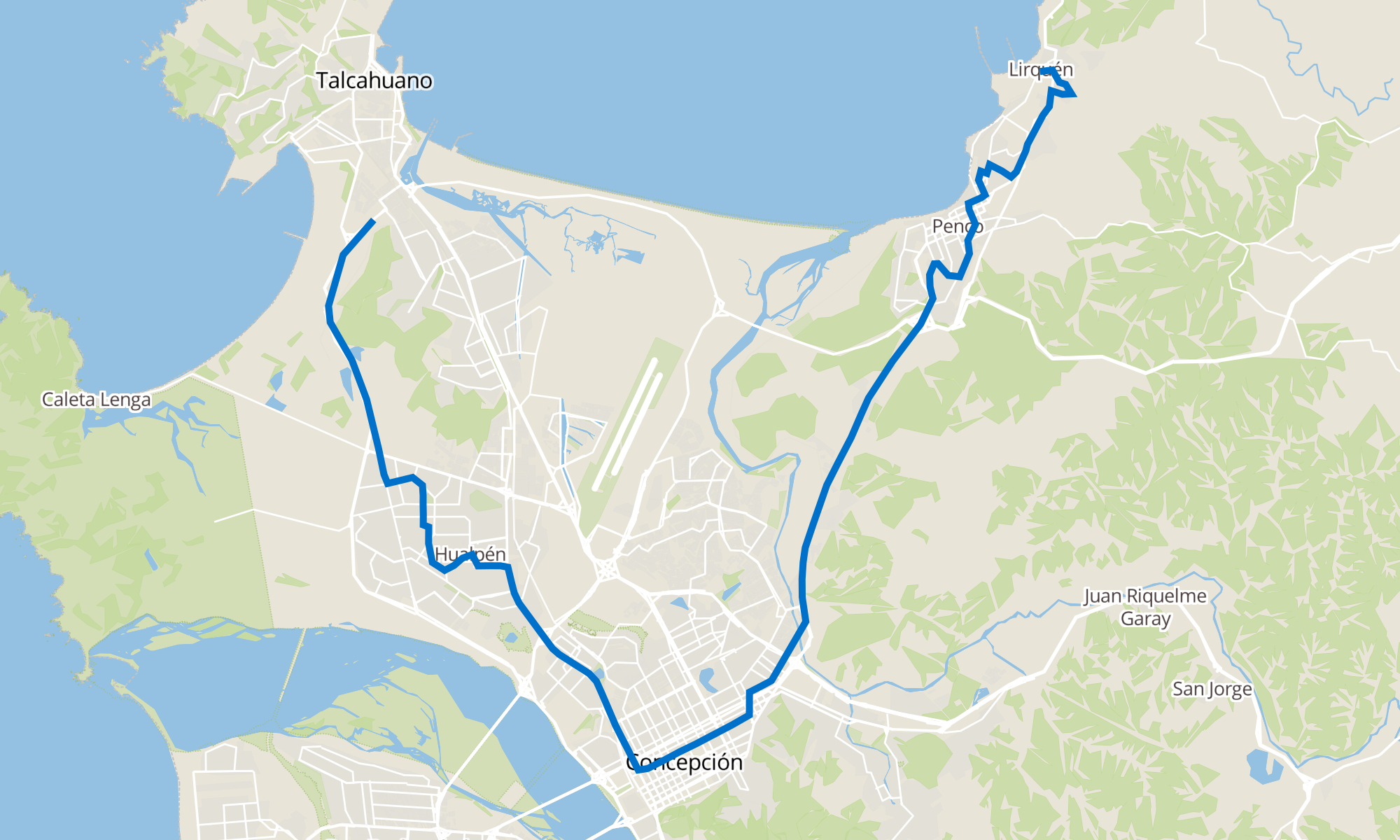 Sentido: Plaza de Lirquen ‎→ Gran Bretana 1200 Oriente (98 paradas)