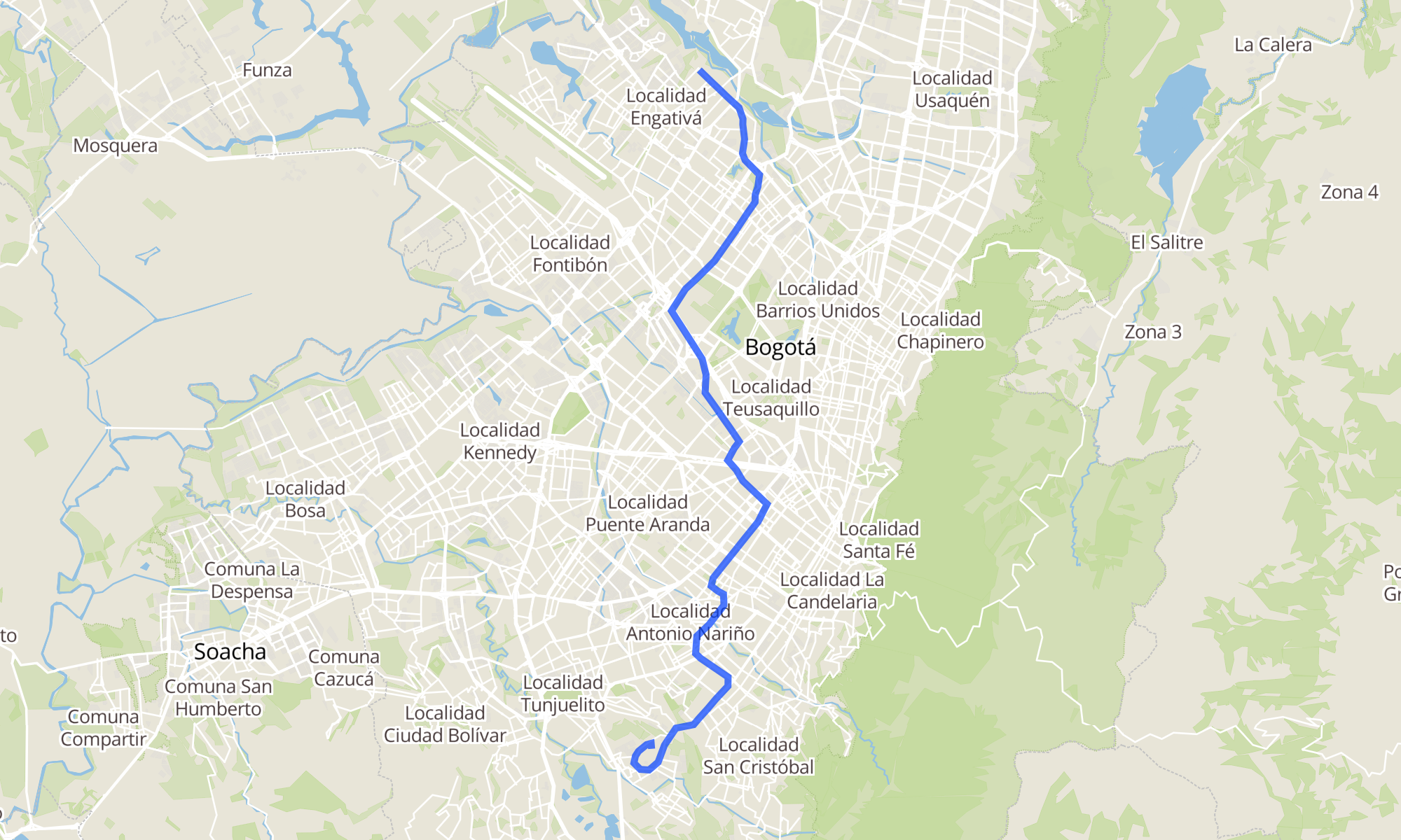 | Br. Ciudad Bachué I Etapa (Ac 90 - Kr 95f) (A) | Br. Zarazota (Cl 48c Bis Sur - Kr 7) |
