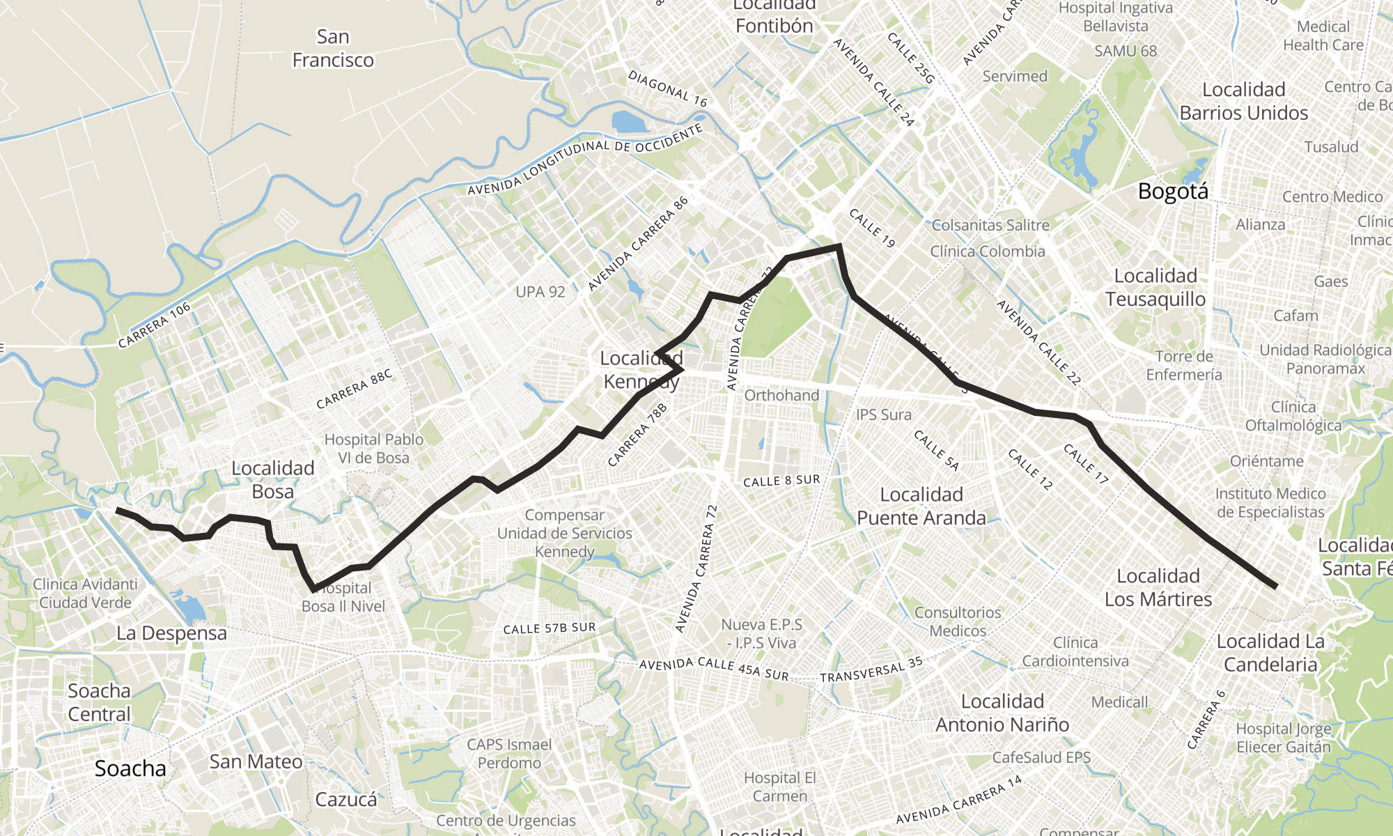| Br. Bosa San José (Tv 80i - Dg 90 Sur) (A) | Br. Veracruz (Ac 19 - Kr 5) (C) |
